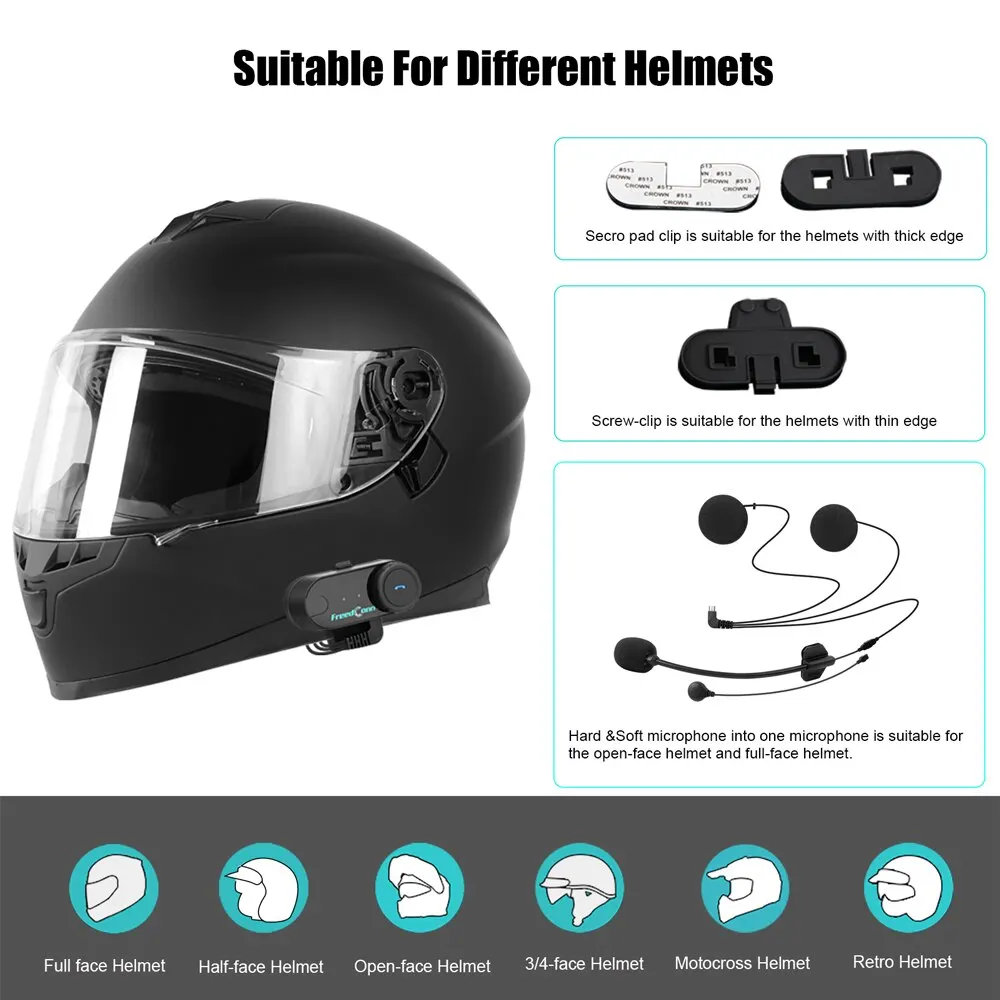Freedconn T Com VB Motorcycle Helmet Headset Bluetooth Stereo Intercom Call Wireless Communication Interphone FM Music Sharing
