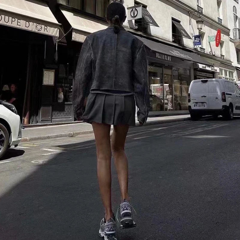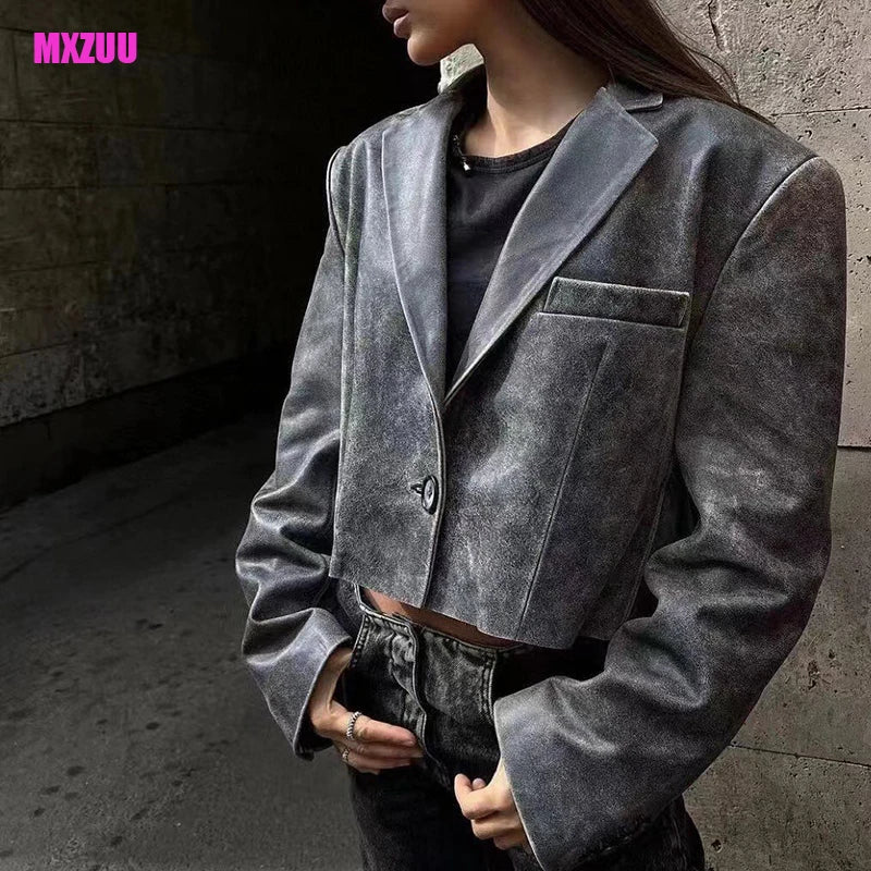 Genuine Leather Coat Women Autumn Winter New Fashion Two-Color Sheepskin Rub Color Retro Do The Old Short One-Button Suit Jacket