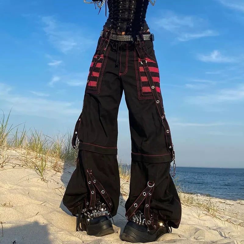 Gothic Women Punk Cargo Pants Wide Straight Leg Pants Grunge Hippie Baggy Trousers Y2k Academic Dark Clothes Streetwear