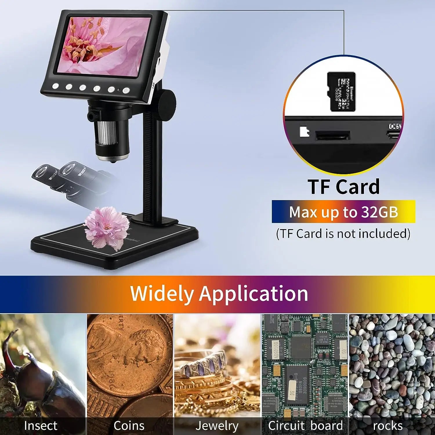 Hayve 4.3'' Digital Microscope 1600X USB Microscope 1080p Soldering Microscope with 8 LEDs Compatible with Windows/Mac OS (DM7)