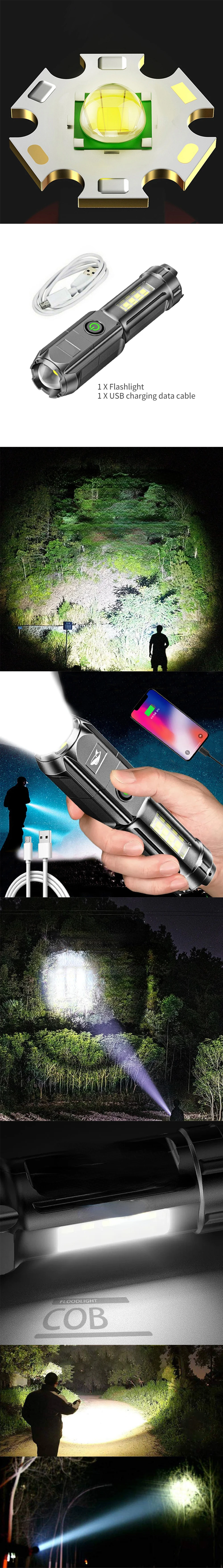 High Power Light Flashlight Outdoor Portable Telescopic Focusing Flashlight COB with Side Lights Dual Light Source Flashlight