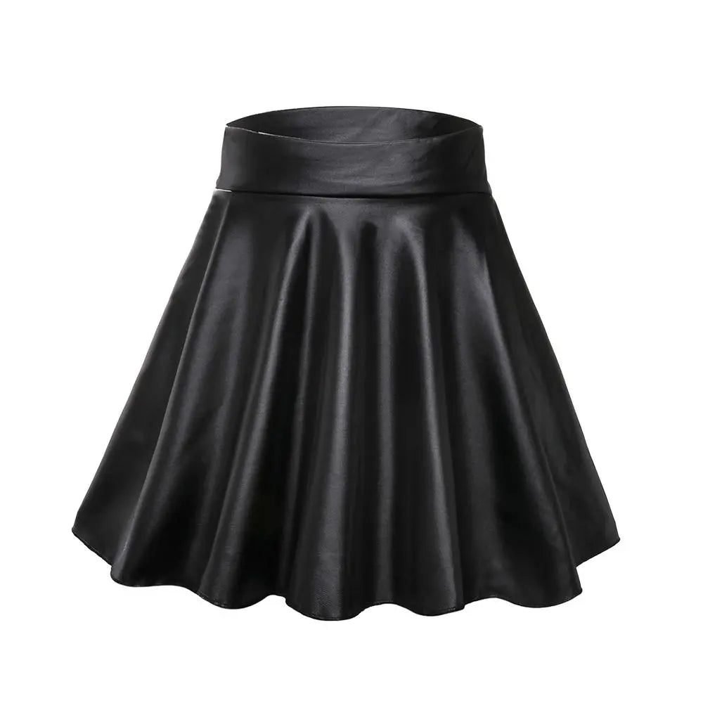 High Waist Elastic Mini Short Skirt Women Faux Leather Skirts