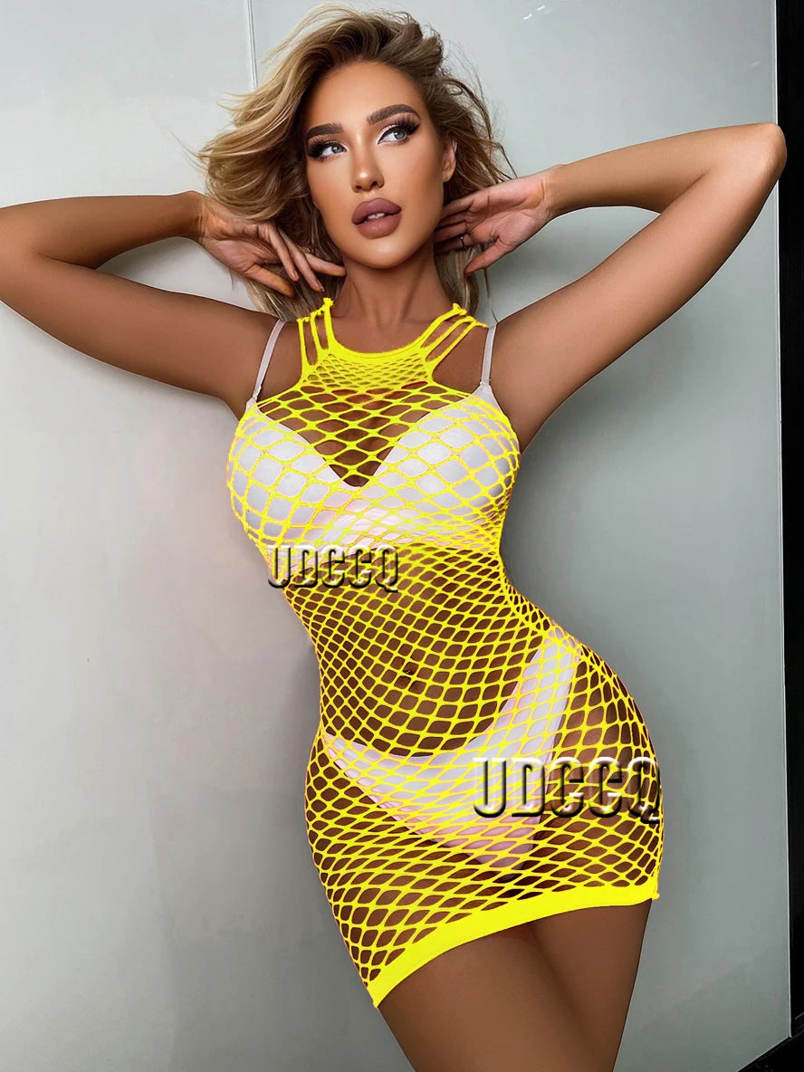 hot Sexy Fishnet Lingerie Sheer Babydoll Underwear Chemises bodysuit Nightdress Catsuit pajamas skirt dress body