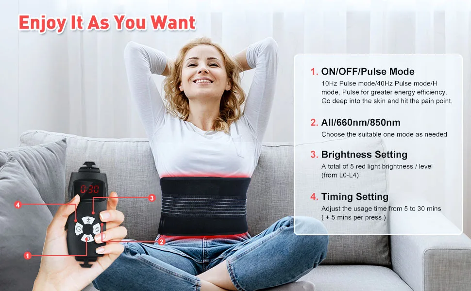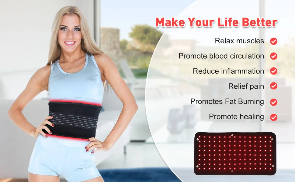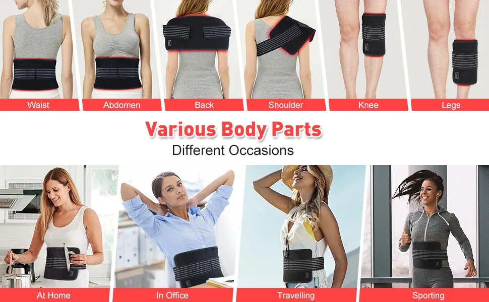 Infrared Light LED Therapy Belt Waist Red Light Heating Massage Belt Pad Lumbar Back Waist Massager for Full Body Pain Relief