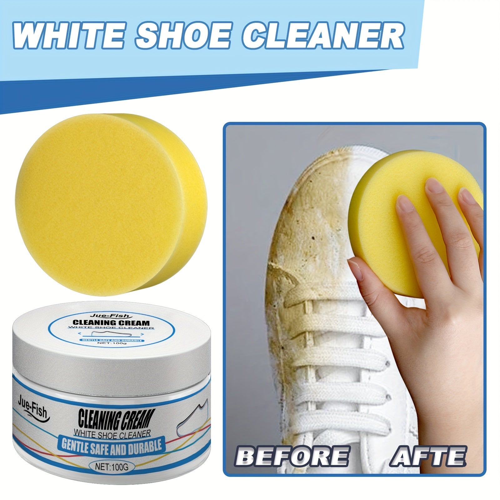 Instant White Shoe Cleaner Cream - Stain Remover & Whitening, Safe for Sneakers, Canvas, Faux Leather | Easy No-Rinse Formula