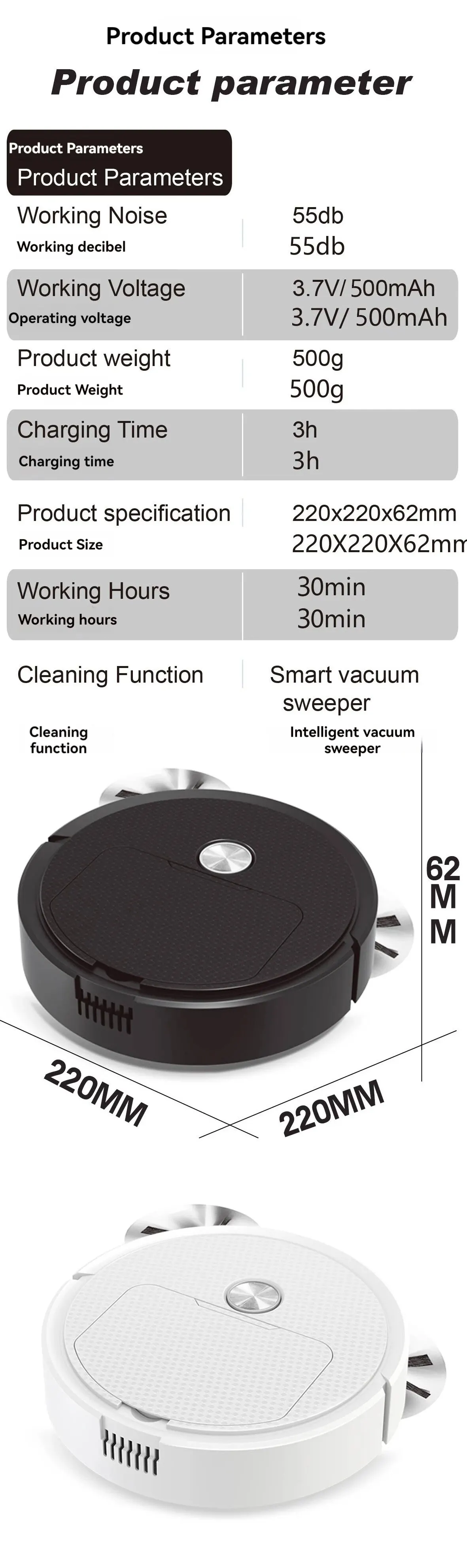 • Intelligent Cleaning Robot :This intelligent sweeping robot is a revolutionary household cleaning tool, designed to effortlessly sweep and suck up dirt and dust from your floors.