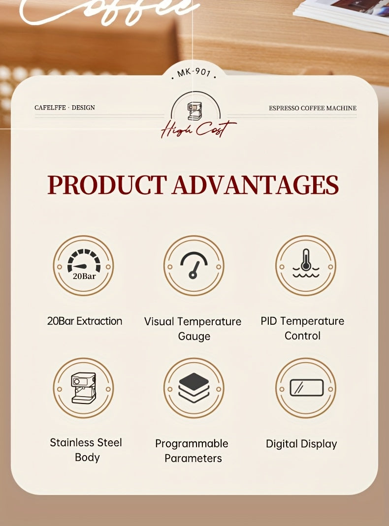 Italian Semi-Automatic Espresso Machine with Built-in Milk Frother & Steam Wand, 20 Bar Pump Stainless Steel Coffee Maker for Latte, Cappuccino, Americano, 1.5L Detachable Water Tank, Smart Touch Panel, Programmable Settings,