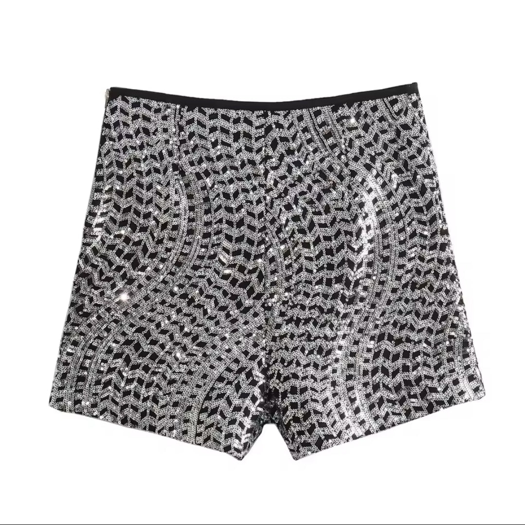 Vintage Chic Women Suit Solid V-Neck Long Sleeve Sequins Blazer Zipper Straight Shorts Fashion Autumn Winter Sets