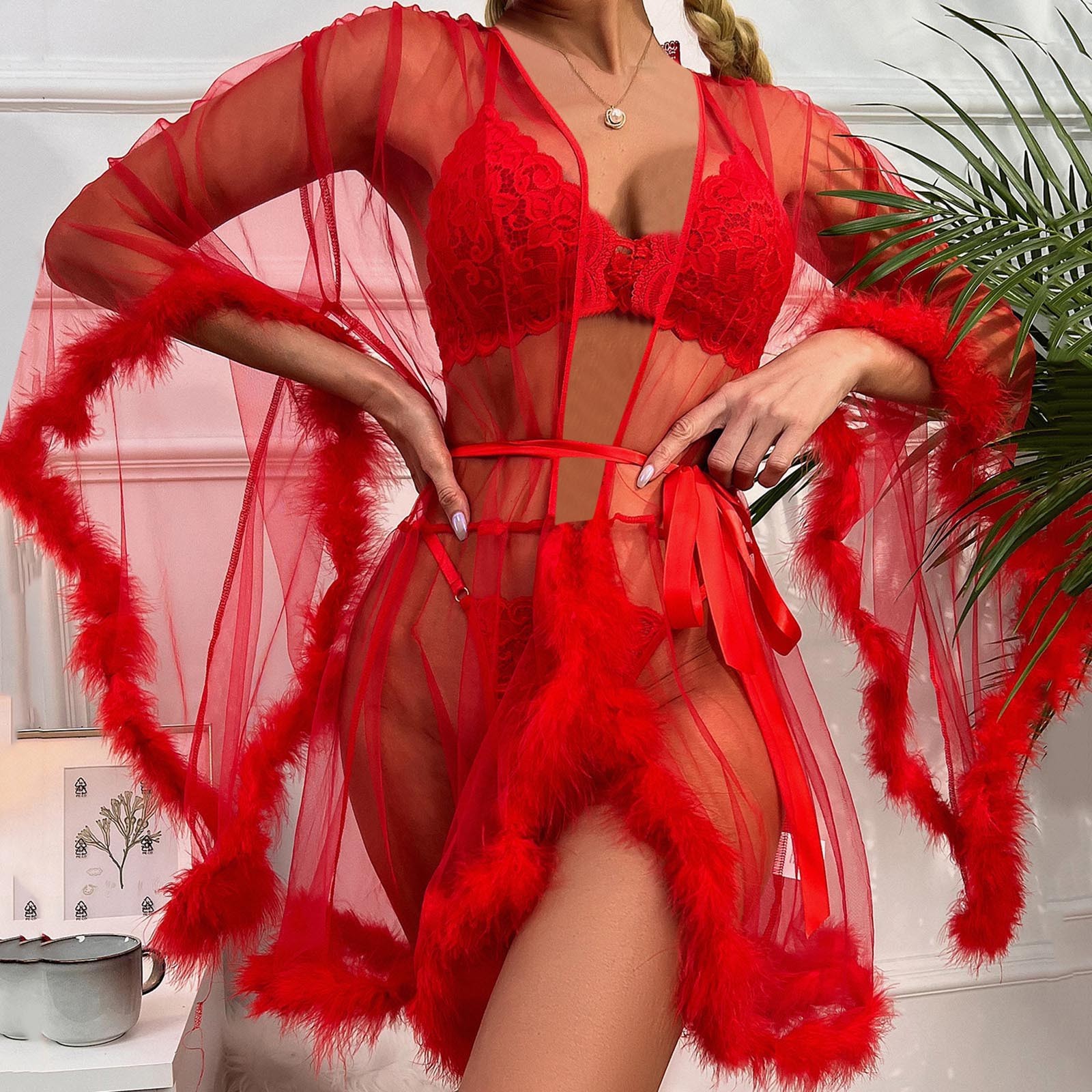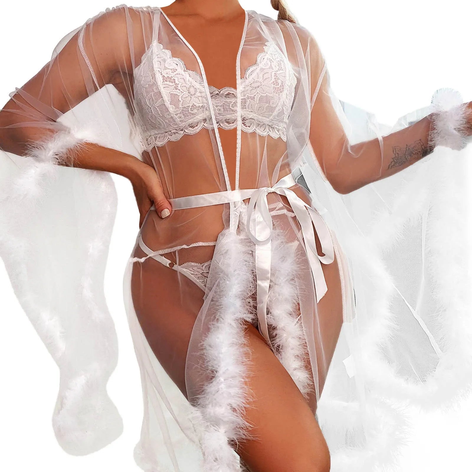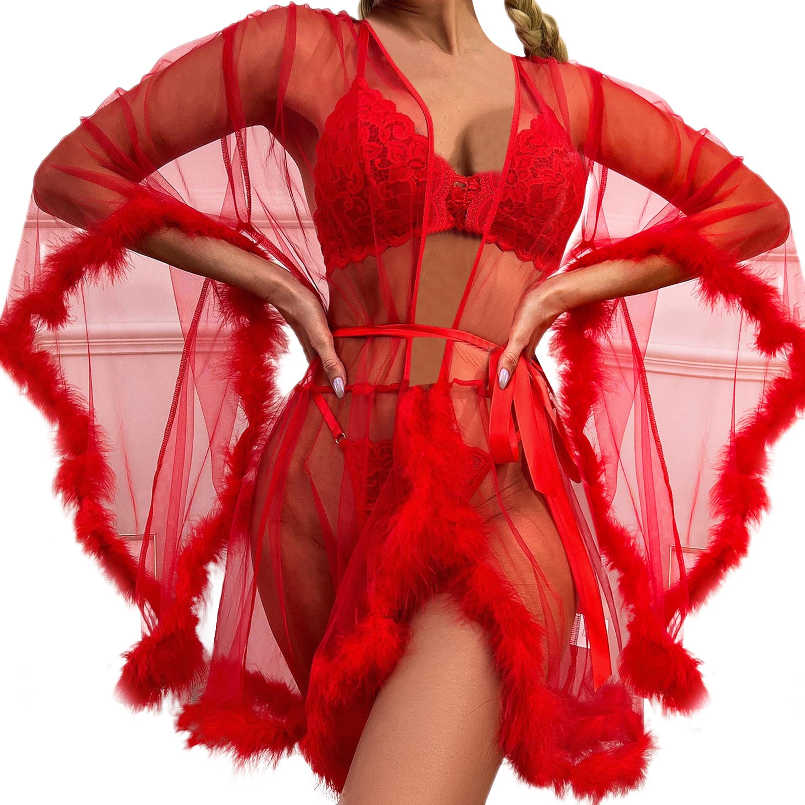 Women's Fun Underwear Sexy Lace Large Transparent See Through Mesh Sexy Bathrobe Pajamas And Swimsuits