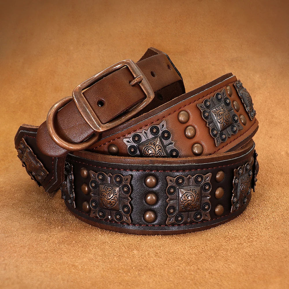 Luxury Genuine Leather Dog Collar for Big Dogs Wide Real Leather Dog Collars For Medium Large Dogs Pitbull German Shepherd