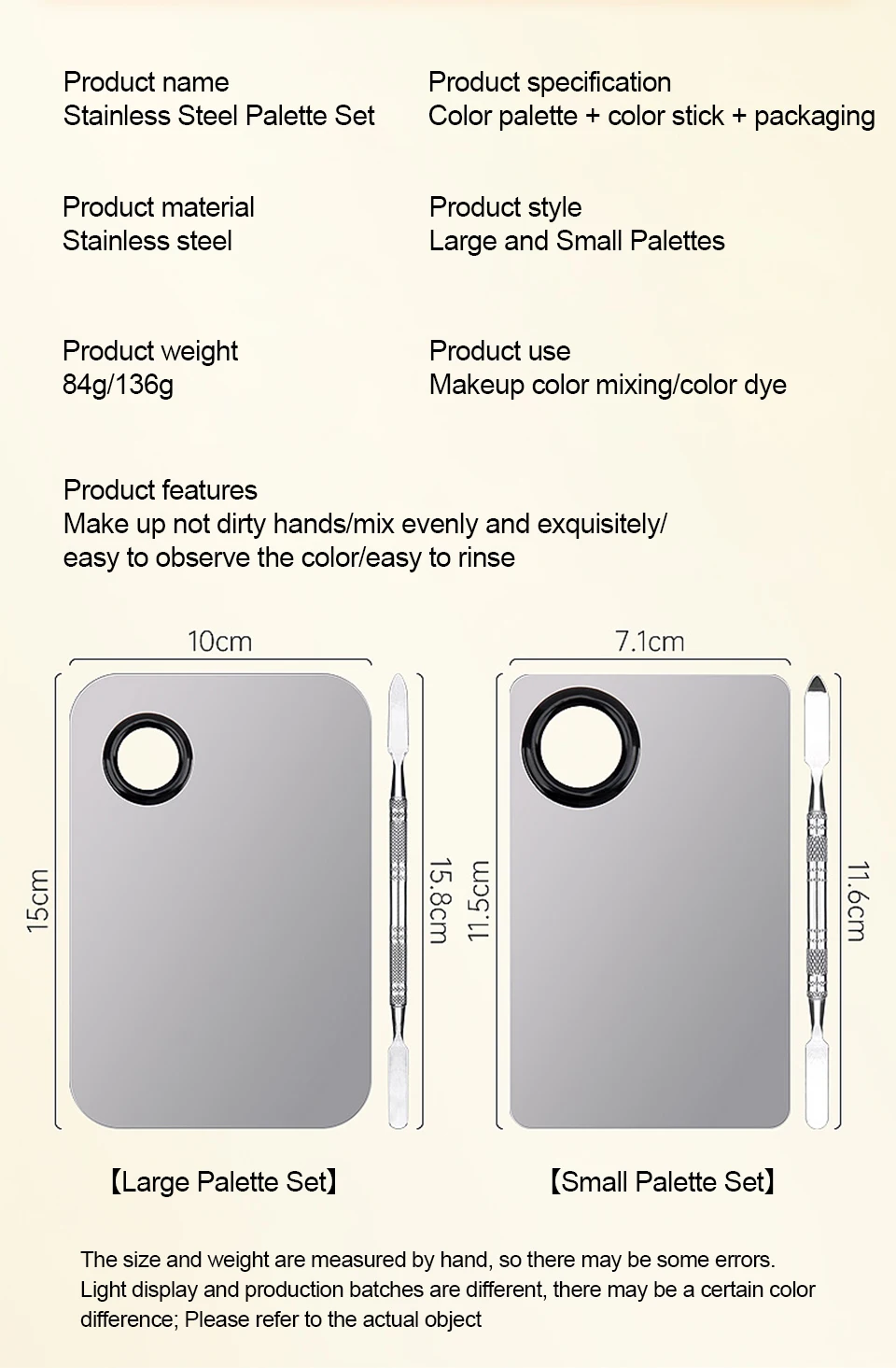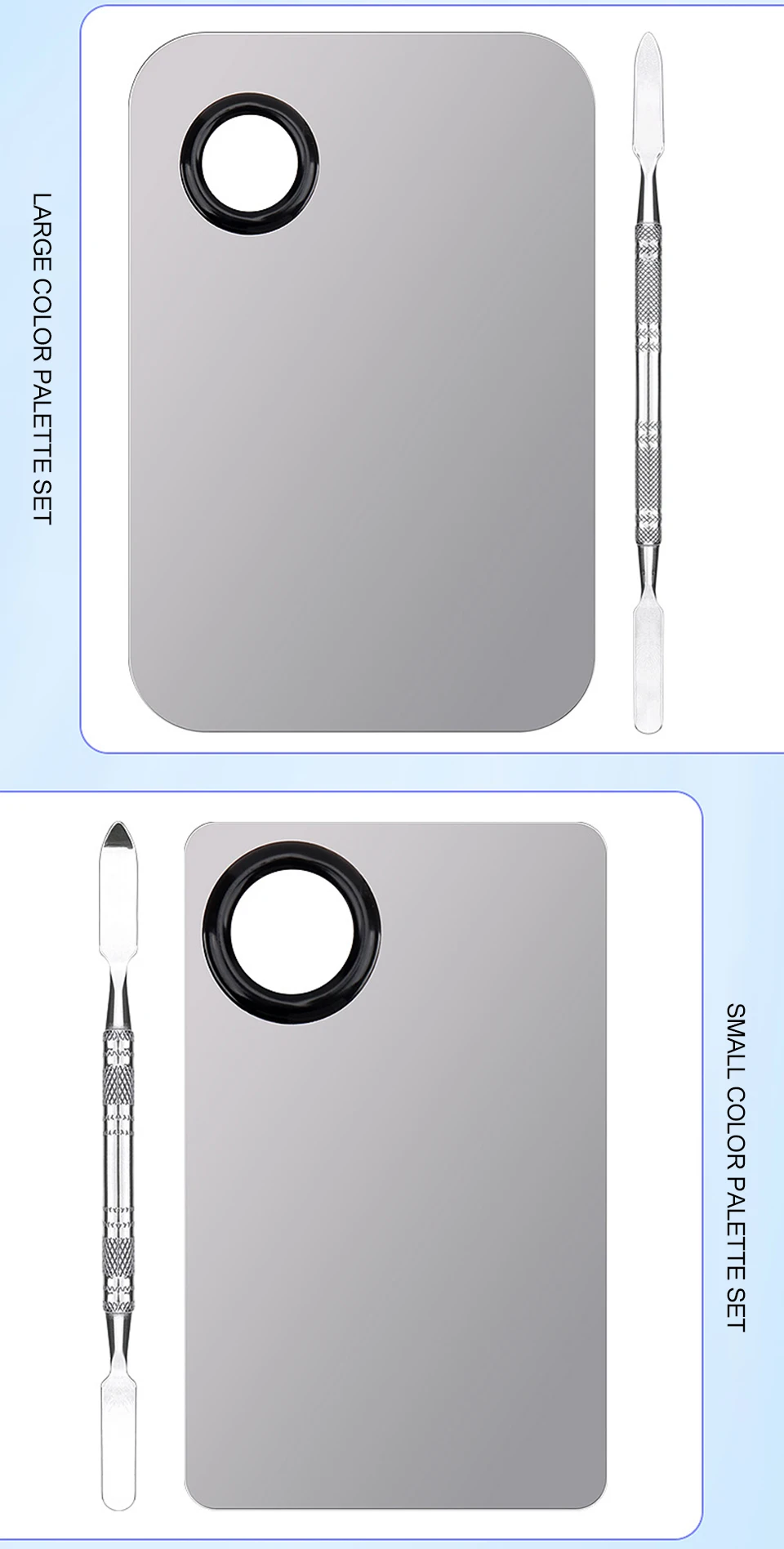 Makeup Mixing Palette Stainless Steel Foundation Lipstick Eye Shadow Mixer Palette with Spatula Rod Color Stick Beauty Tools