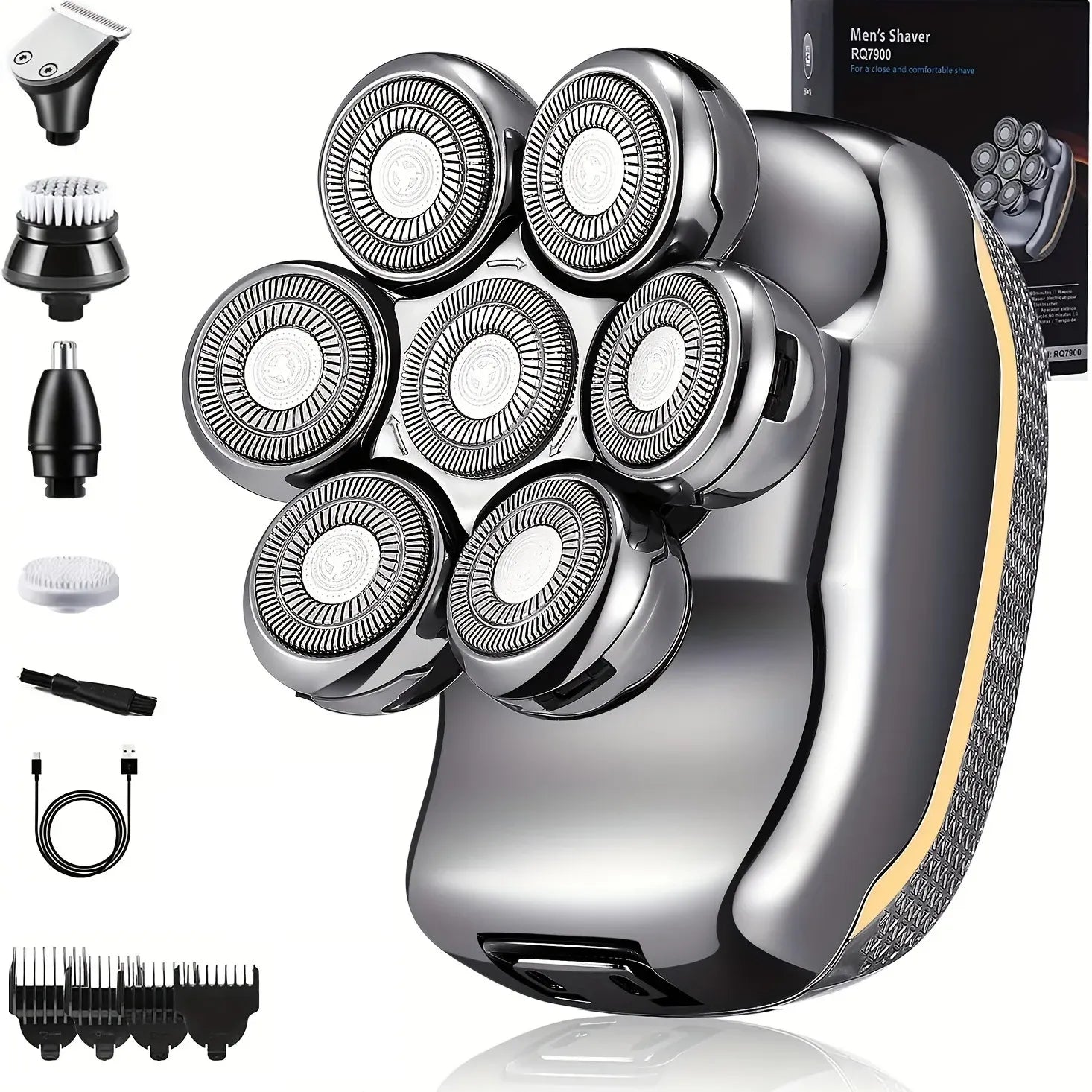 Men's Electric Head Shaver Razor Rechargeable Cordless Hair Shaving Razors For Bald Man 6 In 1 Waterproof Wet Dry Beard Trimmer