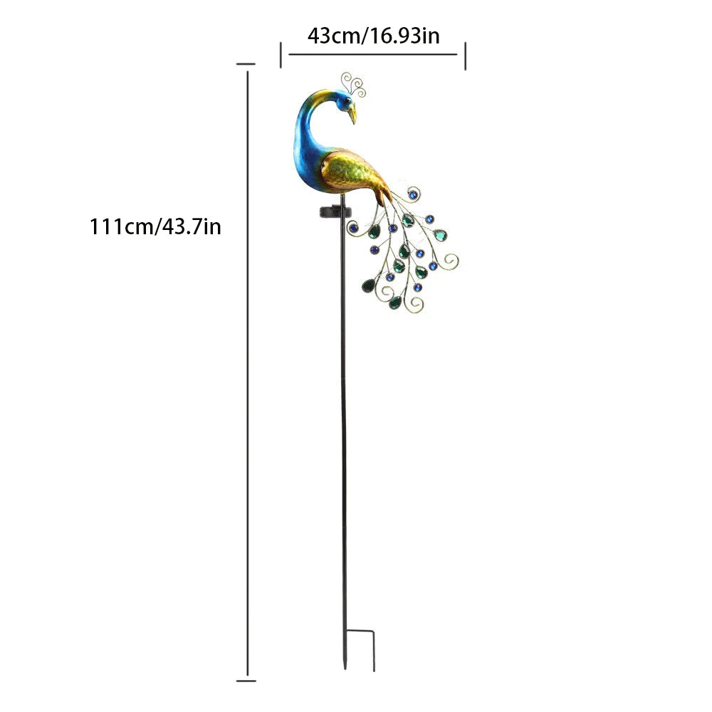 Metal Peacock Decor The lights automatic turn on/off the park lawn