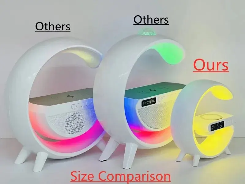 Function description: 15W Fast wireless charging, atmosphere lamp, bedside lamp, dazzling light effect, Bluetooth audio, speaker play and Aux , TF ,Time, Alarm Clock mode.