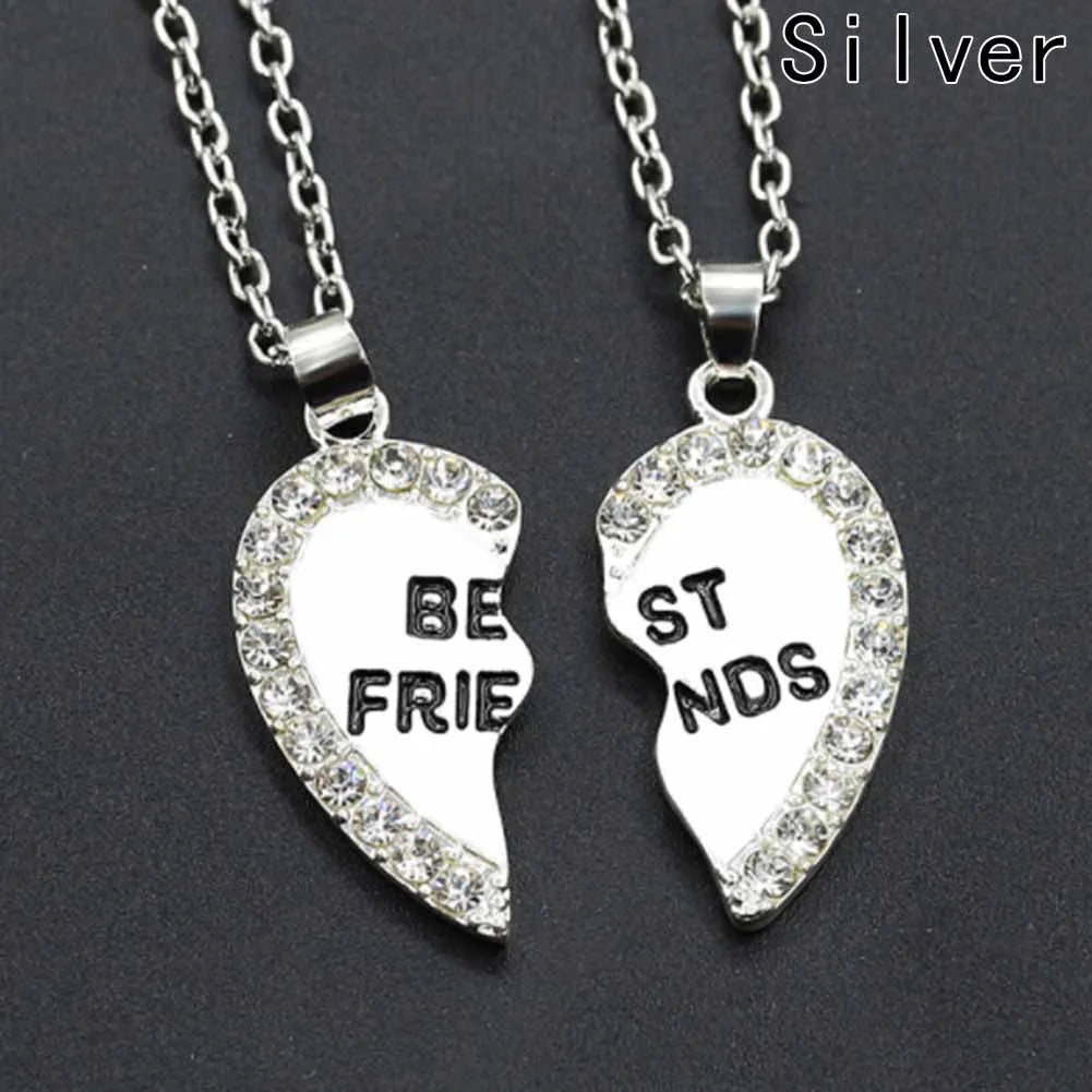 New 1 Pair Half Love Heart Rhinestone Pendant Best Friends Necklace Friendship Gift