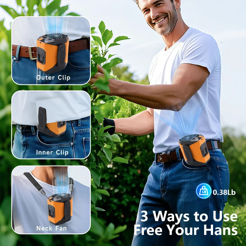 New 10000mAh Waist Fan with Power Bank & Flashlight - High Speed Portable Fan USB Rechargeable for Hiking Running Outdoor Camping Travel