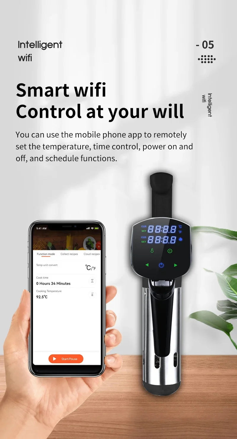 NEW 1100W Vacuum Sous Vide Cooker LCD Touch Screen Digital Display Immersion Circulator Accurate Cooking Waterproof Smart Slow Cooker App Control Connected Cooking