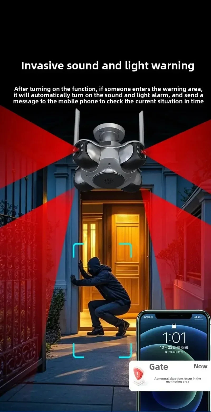 NEW 20MP Surveillance Camera 10K With Four Screens Four Pan Tilt zoom, 360° Panoramic View Home Outdoor Office Factory Wireless Wi-Fi 128GB Network Camera Home Security Supplies