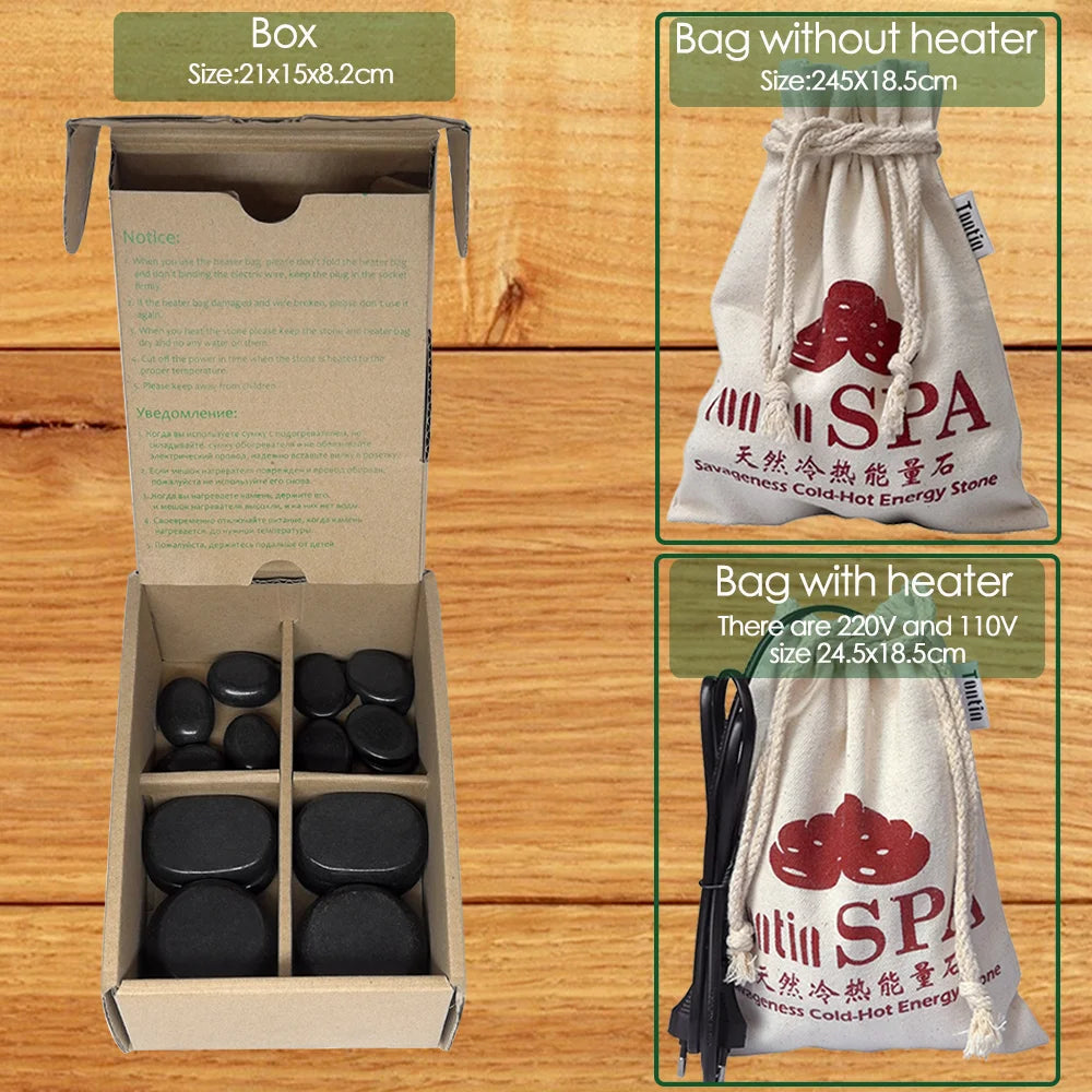 NEW 20PCS Set Korean Professional Hot Stone Massage Set Heater Box Relieve Stress Back Pain Health Care Lava Basalt Round Massage Tool Full Body Pain Relief Treatment Healing Heating Stones