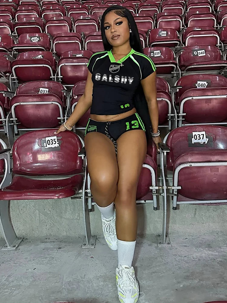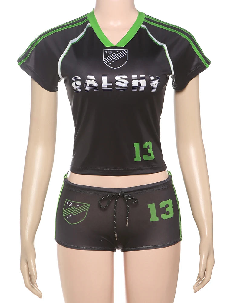 NEW 2PCS Set Black/Pink Color Women Hottie Sexy Summer Casual Tracksuits Short Sleeve O-Neck Tees +Drawstring Shorts Mujer Sporty Streetwear