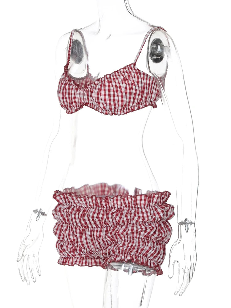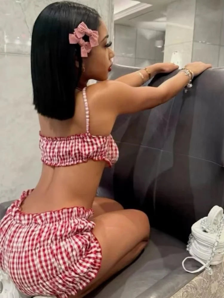 NEW 2PCS Set Stripe Women Summer Beach Vacation Elastic Camisole +Ruched Shorts Matching Clubwear Midnight Summer Streetwear