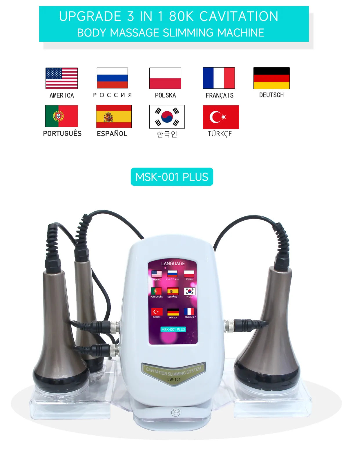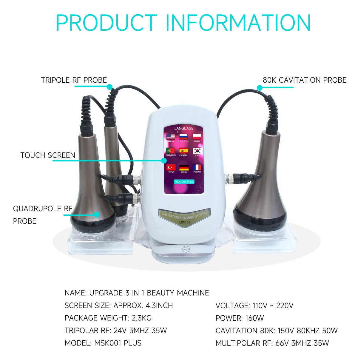 New 3 in 1 80K Cavitation Slimming Machine Ultrasonic Body Shaping Massage RF Facial Skin Tightening Lifting Device with Stand
