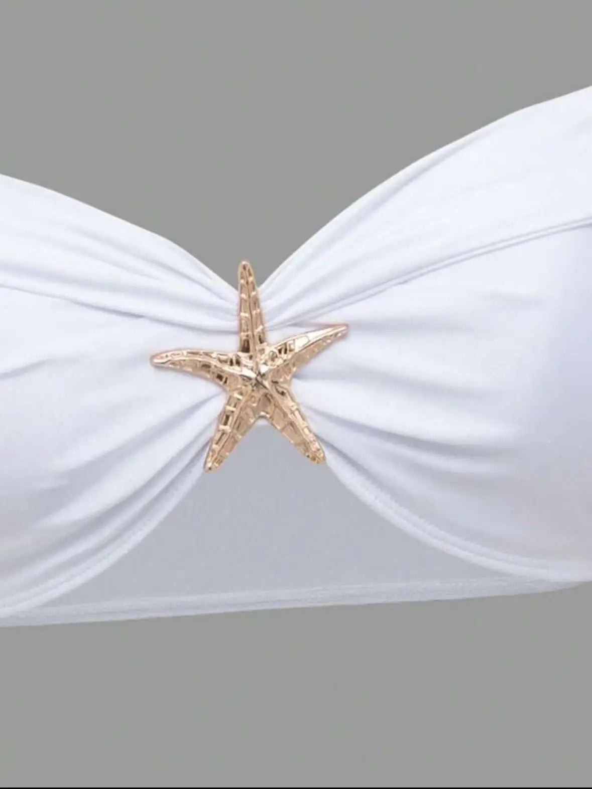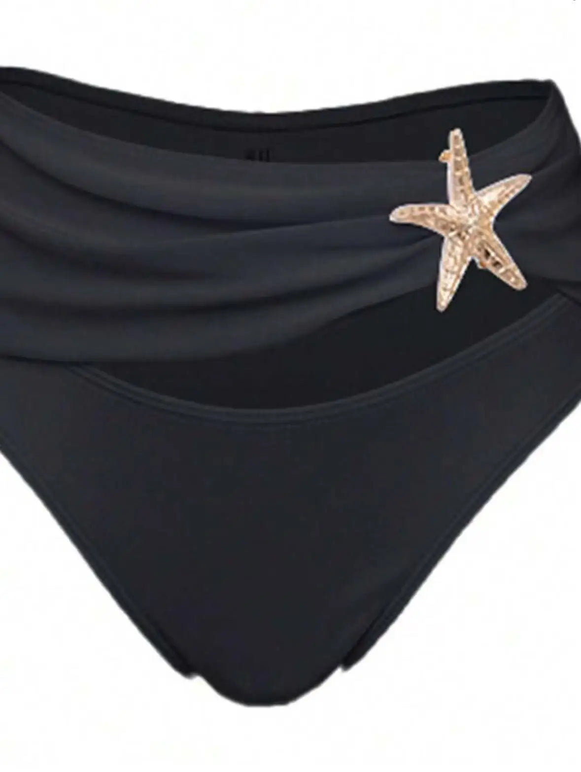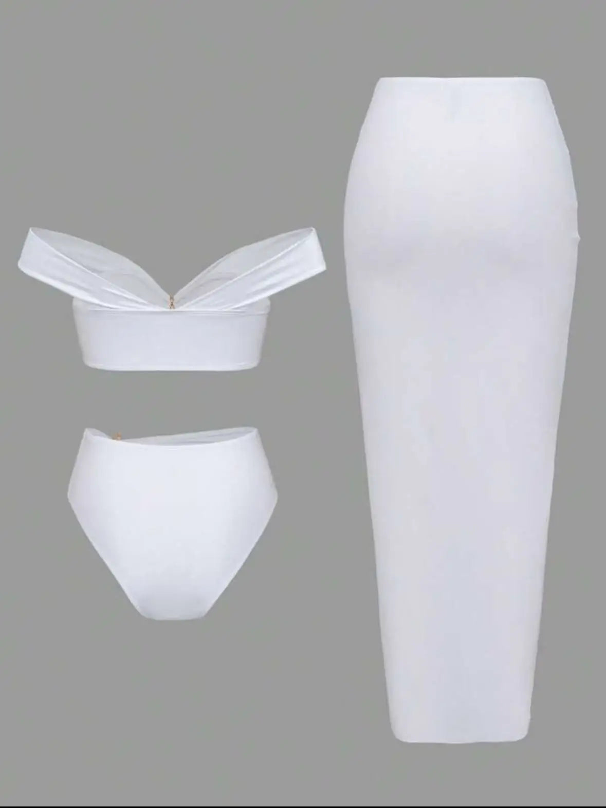 New 3PCS Set Black/White Color European and American Starfish Split Swimsuit Long Skirt Bikini Suit