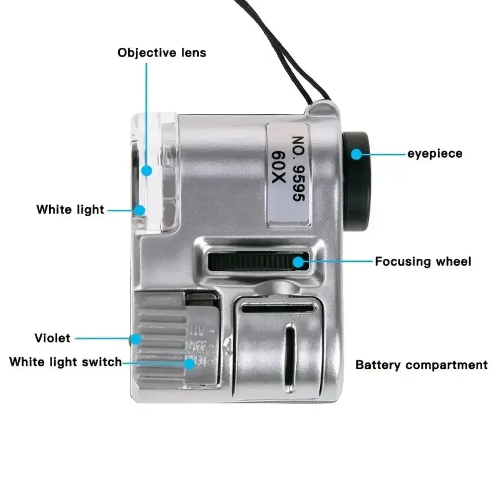 NEW 60X Handheld Magnifying Glass Mini Pocket UV Magnifier Portable Jeweler Microscope Loupe With LED Light Diamonds Jewelry Magnifier