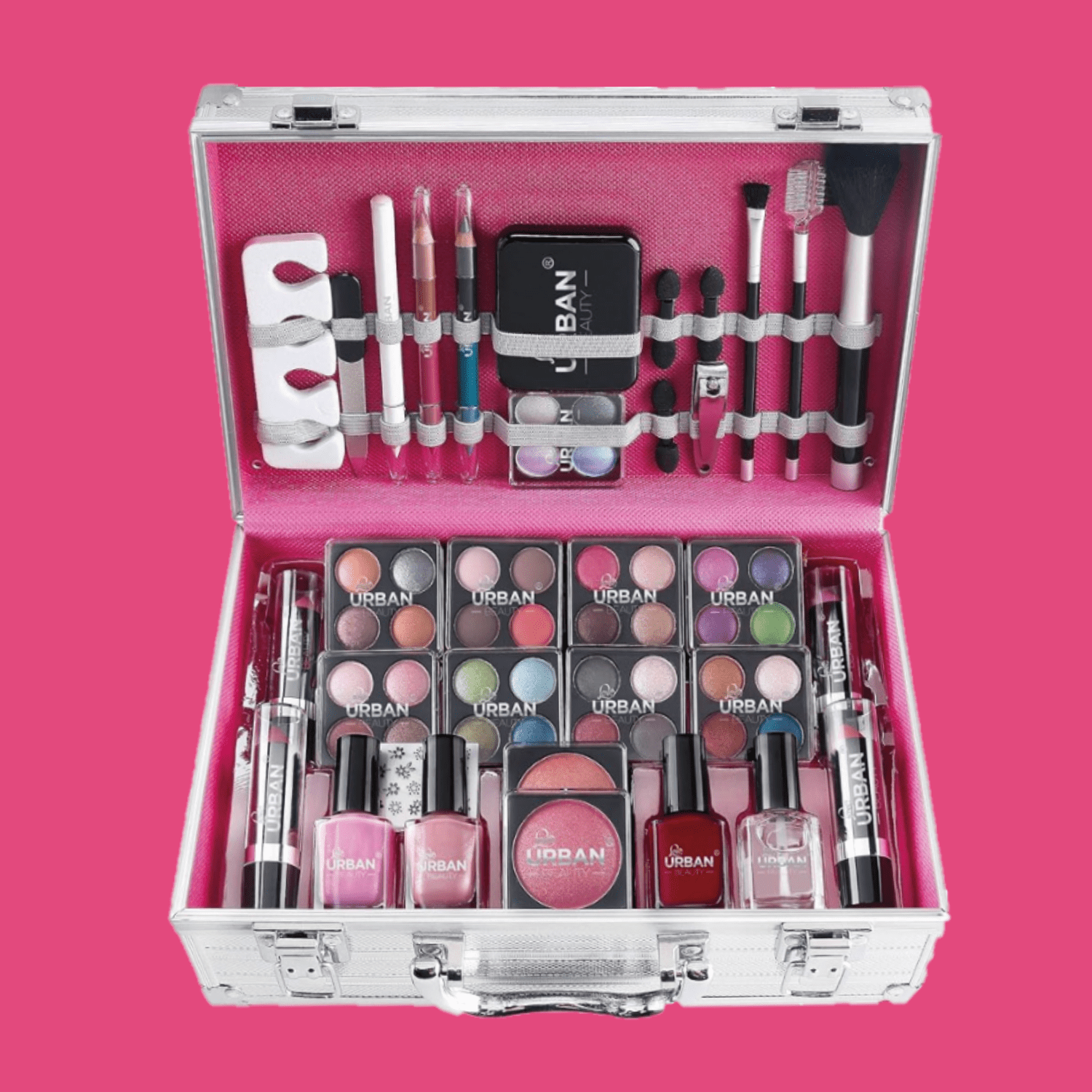 NEW 64 PCS Set Makeup Cosmetic Kit with Aluminum Vanity Case - Eyeshadows, Lip Glosses, Mini Compact & Applicators in Travel Case - All-in-one Makeup Box | Sent and Fulfilled from UK Warehouse and Delivered on a Tracked 48 U
