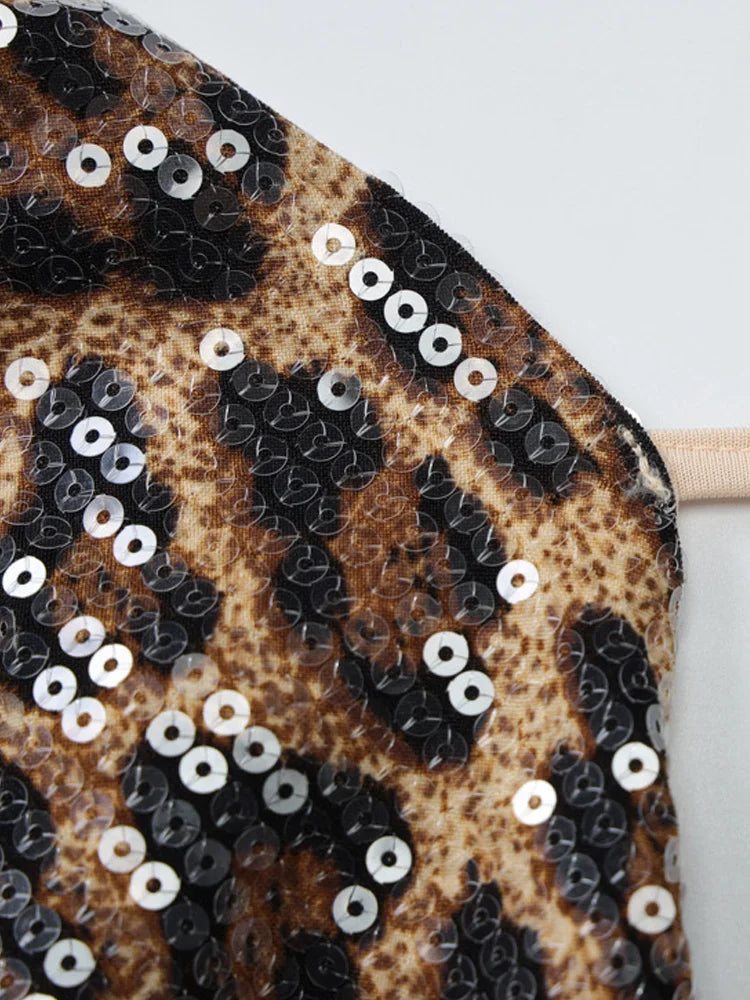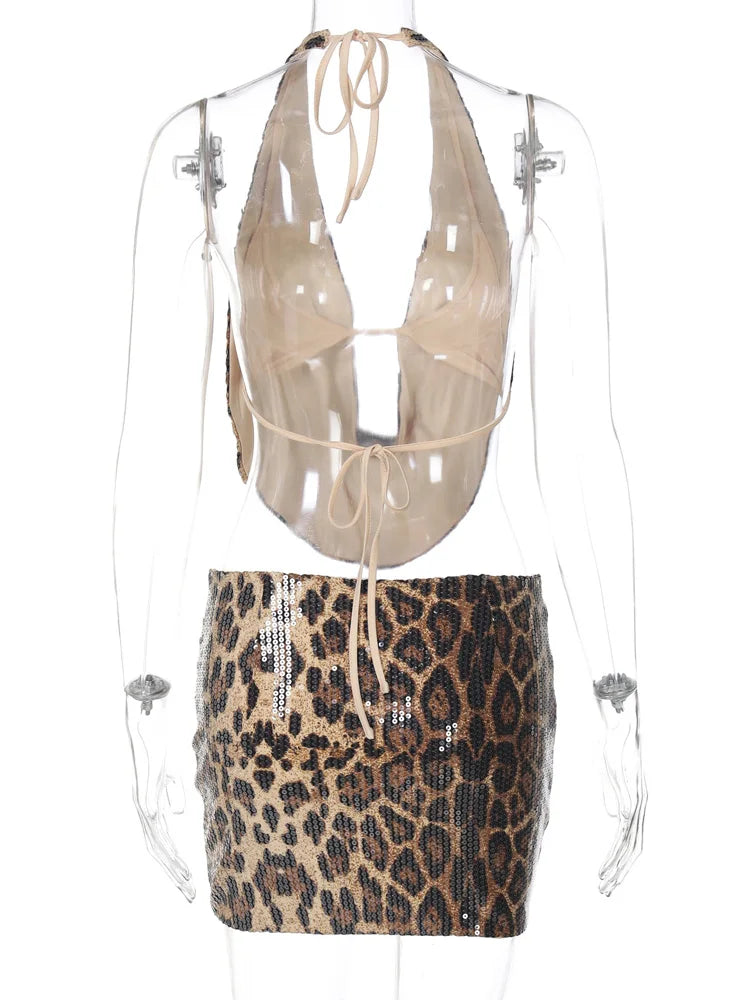 NEW Arrivals 2PCS Set UK Size Sexy Hot Girls Glitter Leopard Draped Sequins Crop Top And Skirt Set Dress Glitter Sequin Festival Outfits Ladies Spring Summer Evening Beach Party Night Clubwear