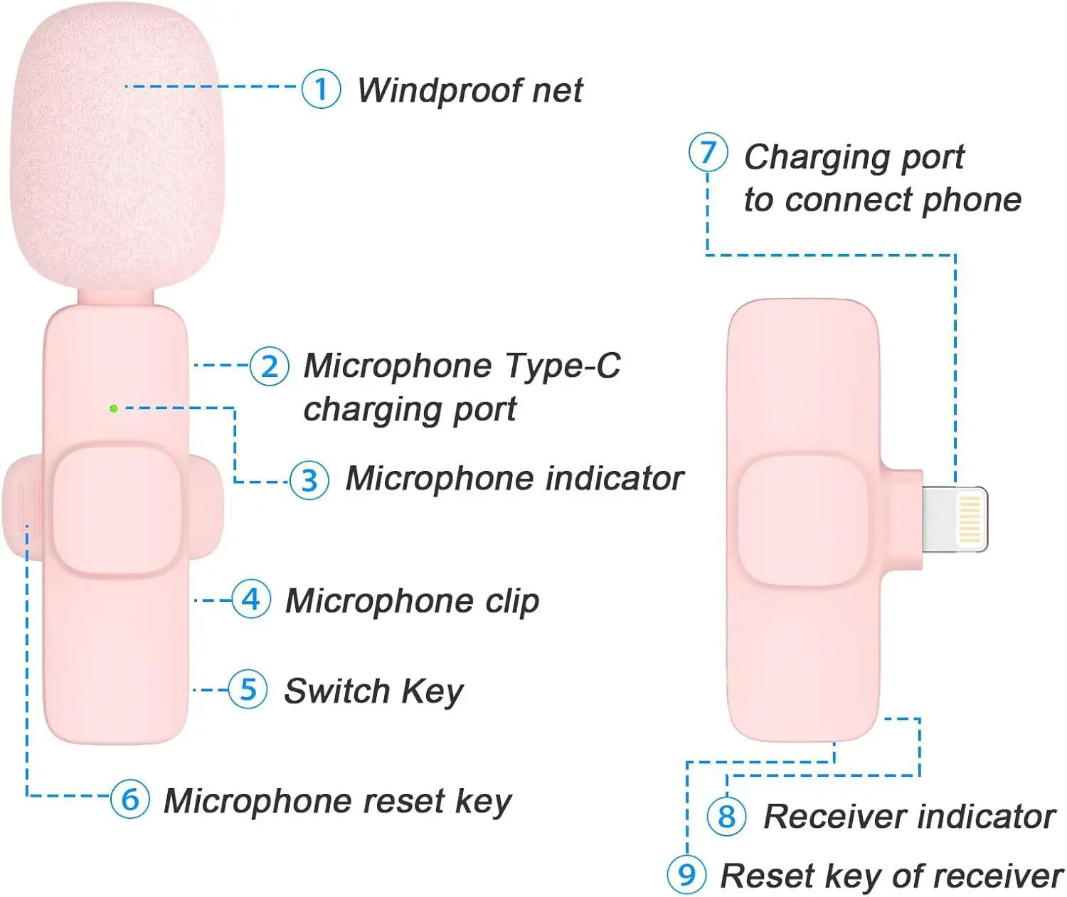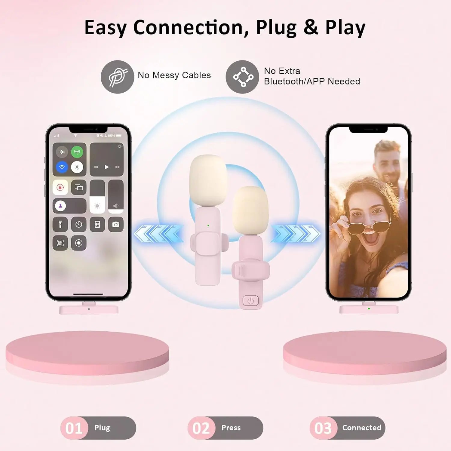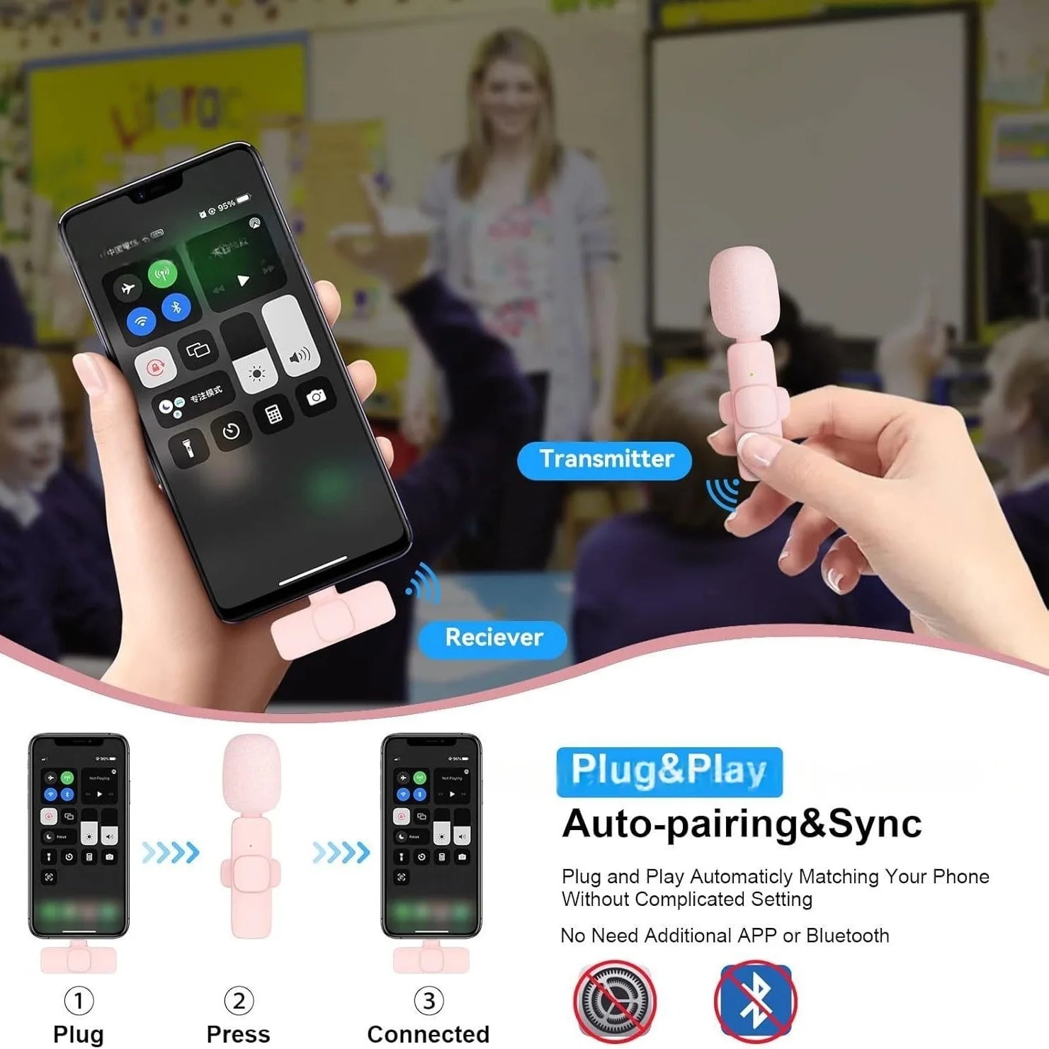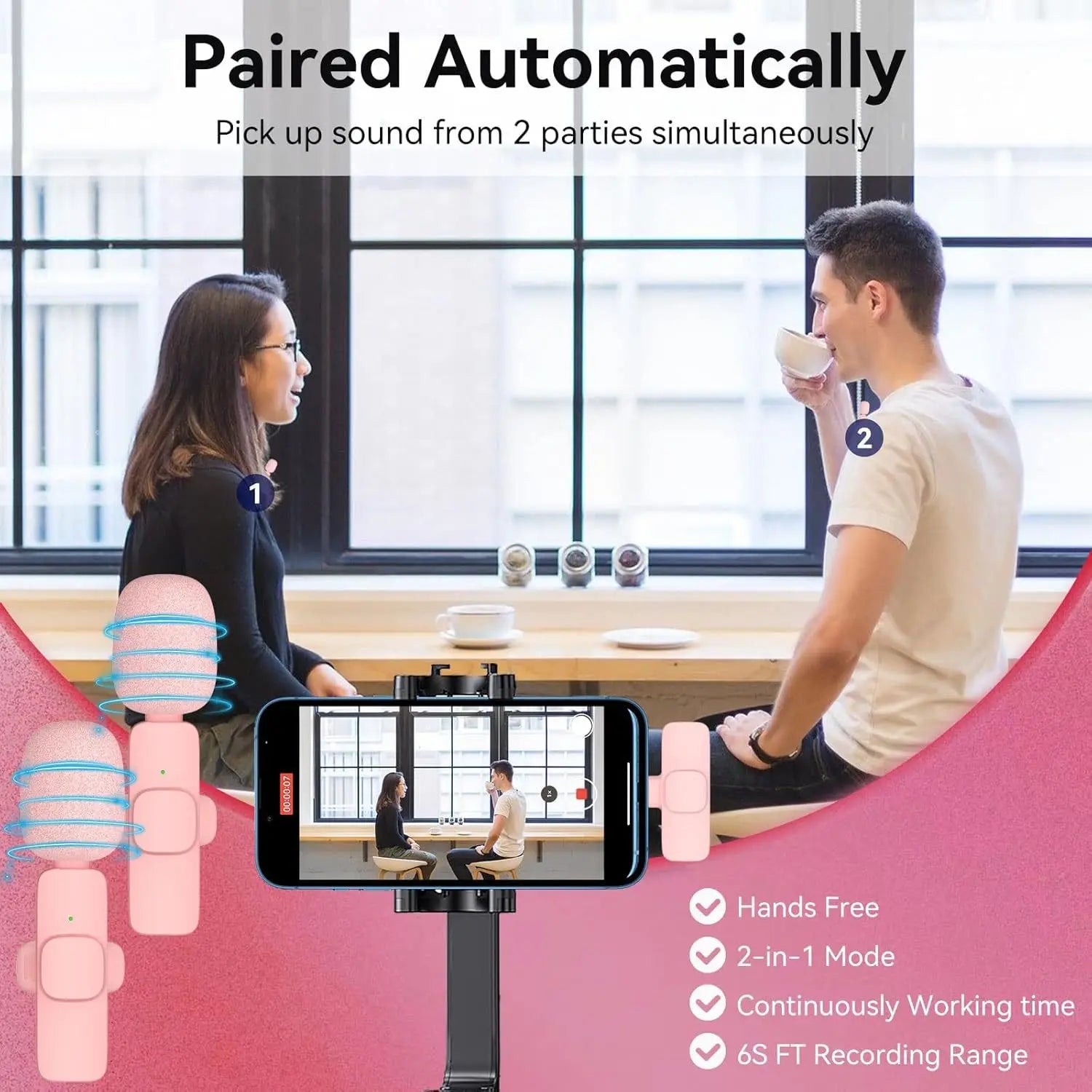 NEW Arrivals 2PCS Set Wireless Lavalier Microphone Portable Audio Video Recording Mini Microphone for iPhone Android PC Camera Live Streaming Gaming Phone Accessories
