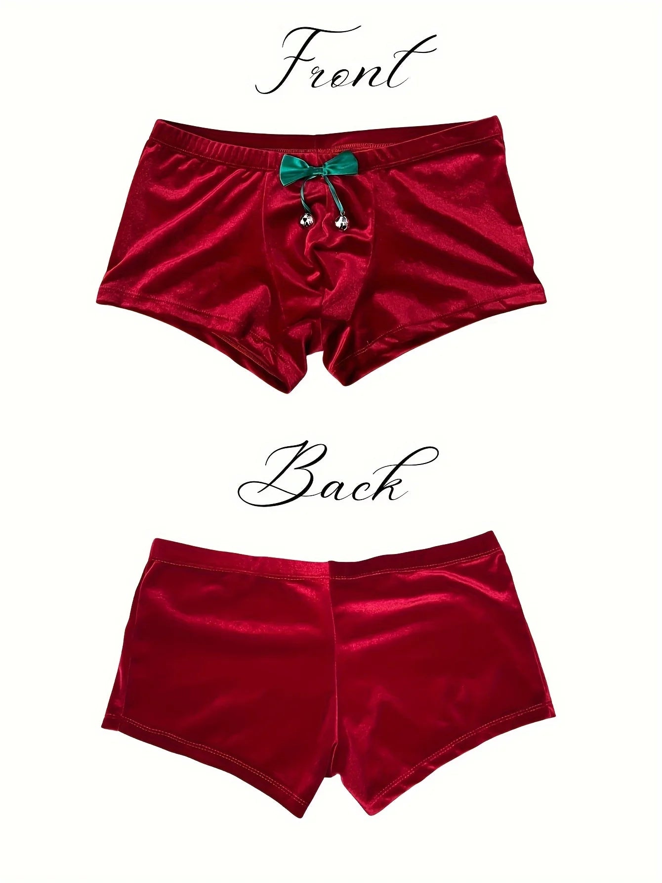 NEW Arrivals 2PCS Velvet Set S-3XL Plus Size Free Christmas Boxer + Hat 】1Set Men's High-Quality Velvet Sexy Underwear, Featuring Bowknot and Bell Christmas Design