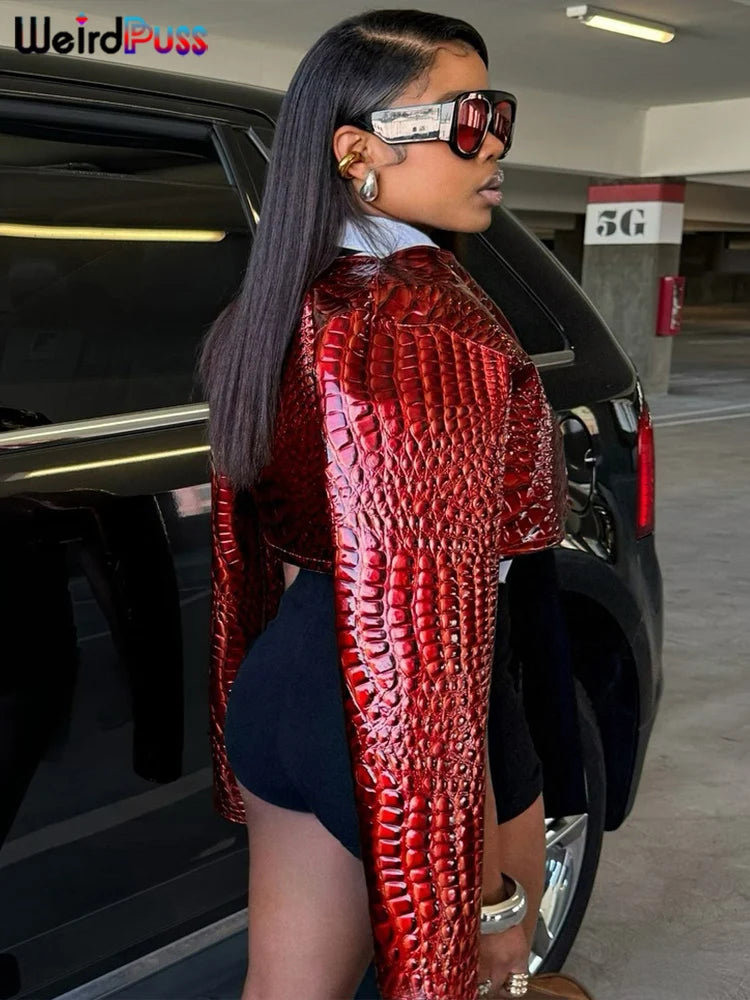 NEW Arrivals 3 Colors Leather Jacket Women Hipster Black/Pink/Snakeskin Fall Trend O-Neck Full Sleeve Street Wild Basic Outwear Crop Mini Coat Girls Luxury Fashion Clothing Supplies