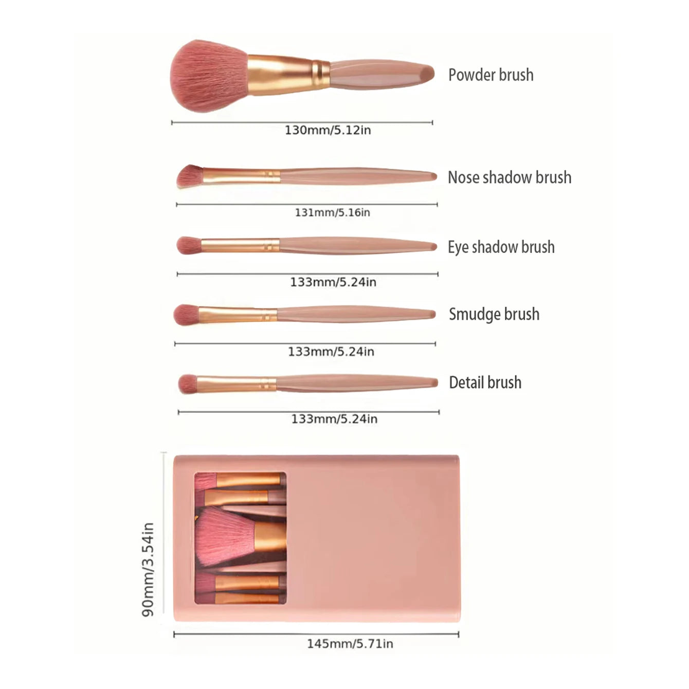 NEW Arrivals 5 PCS Set Cosmetic Brushes Travel Kit With Mirror Organizer Case Make-Up Powder Smudge Brush Set Full Series Storage Box Letter Pattern Women Cosmetic Accessories