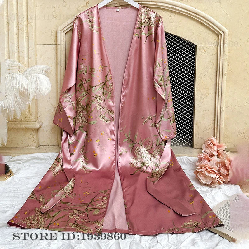 NEW Arrivals 7 Colors Authentic Harajuku Japanese Flower Luxury Kimono Bathrobe Gown Sleepwear Satin Bride Wedding Long Robe Dress Nightgown Spring Female Ladies Luxury Lingerie Fashion Apparel Products