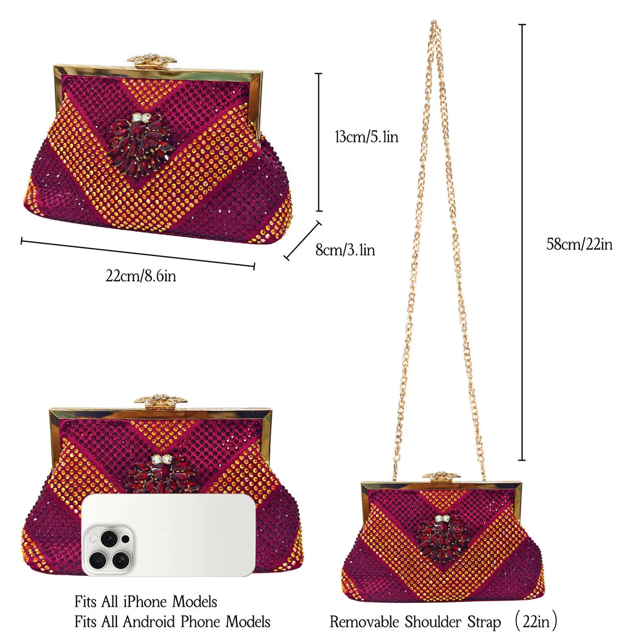 NEW Arrivals 8 Colors Italian Design Rhinestone Luxury Wine Colour Pointed Toe Shoe & Bag Matching Set Women's High Heels Night Club Business Dinner Evening Wedding Birthday Party Ladies Luxury Fashion Apparel Accessories Set