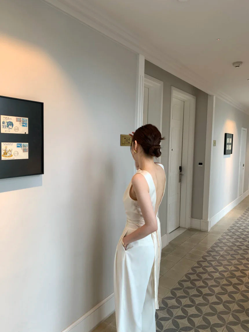 NEW Arrivals Beige/Black Feminino Sexy Backless Ropa Mujer Women Top New Sleeveless Clothes Round Neck Tanks & Camis Summer Elegant Tops Evening Beach Party Clothes
