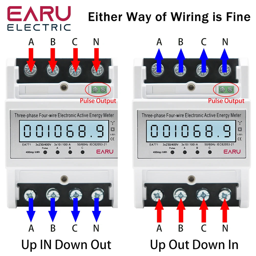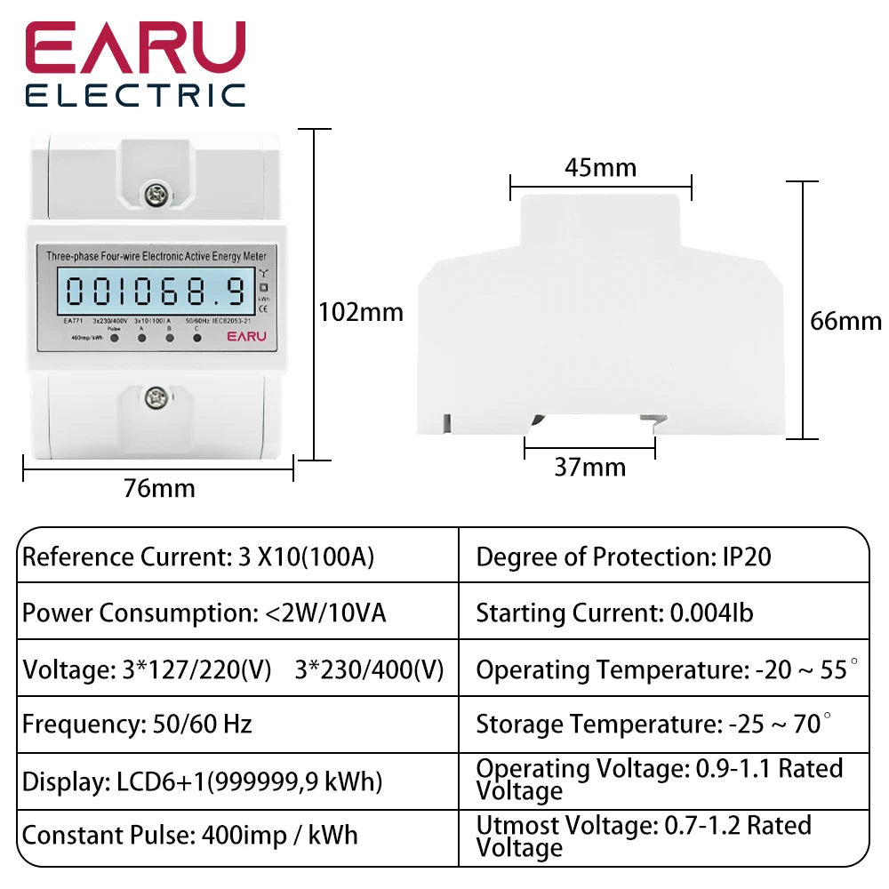 NEW Arrivals Din Rail AC 230 220V 3 Phase 4 Wire Energy Meter Power Consumption Monitor kWh Meter Wattmeter Bi Volt 100A 50/60Hz LCD Backlight
