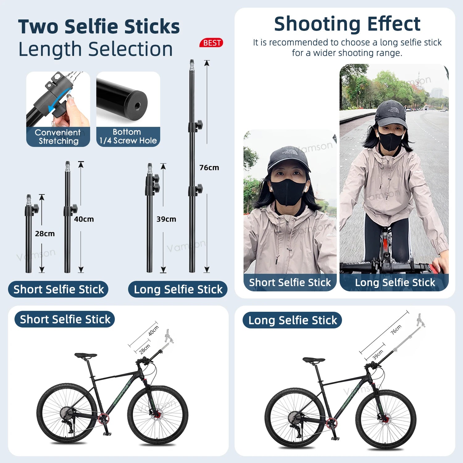 NEW Arrivals Front Rear Mobile Phone Riding Bike Telescopic Monopod Bicycle Selfie Stick for Insta360 iPhone Huawei Xiaomi Samsung Accessories