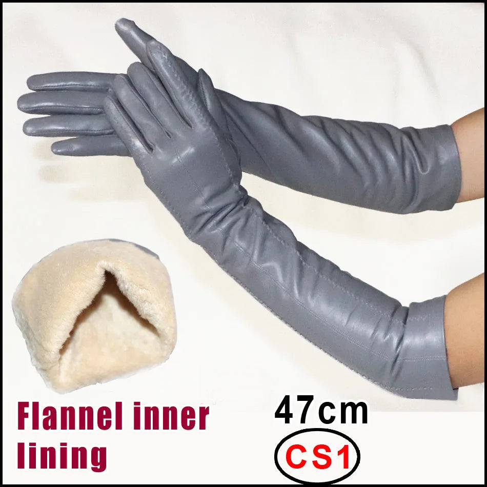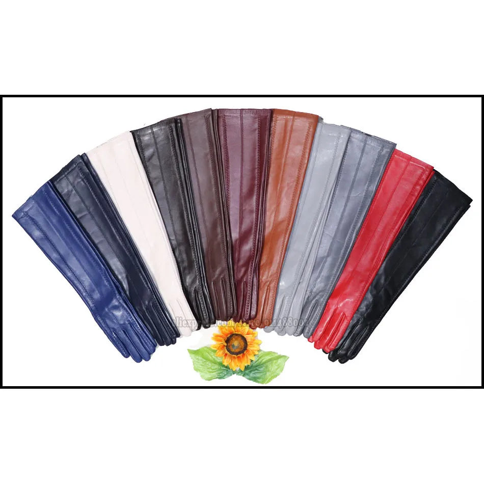 NEW Arrivals Genuine Real Leather Gloves 100% Sheepskin Long Gloves Women's Winter Warm Fleece Lining Over Elbow Arm Sleeves Color Ladies Fashion Apparel Accessories