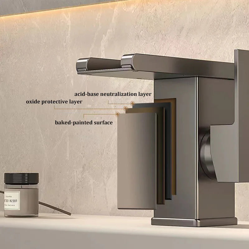 NEW Arrivals Luxury Basin Waterfall Style All-Copper LED Light Luminous Faucet Bathroom + 80cm Hot Cold Pipe Above Counter Basin Household Hot and Cold Water Faucet