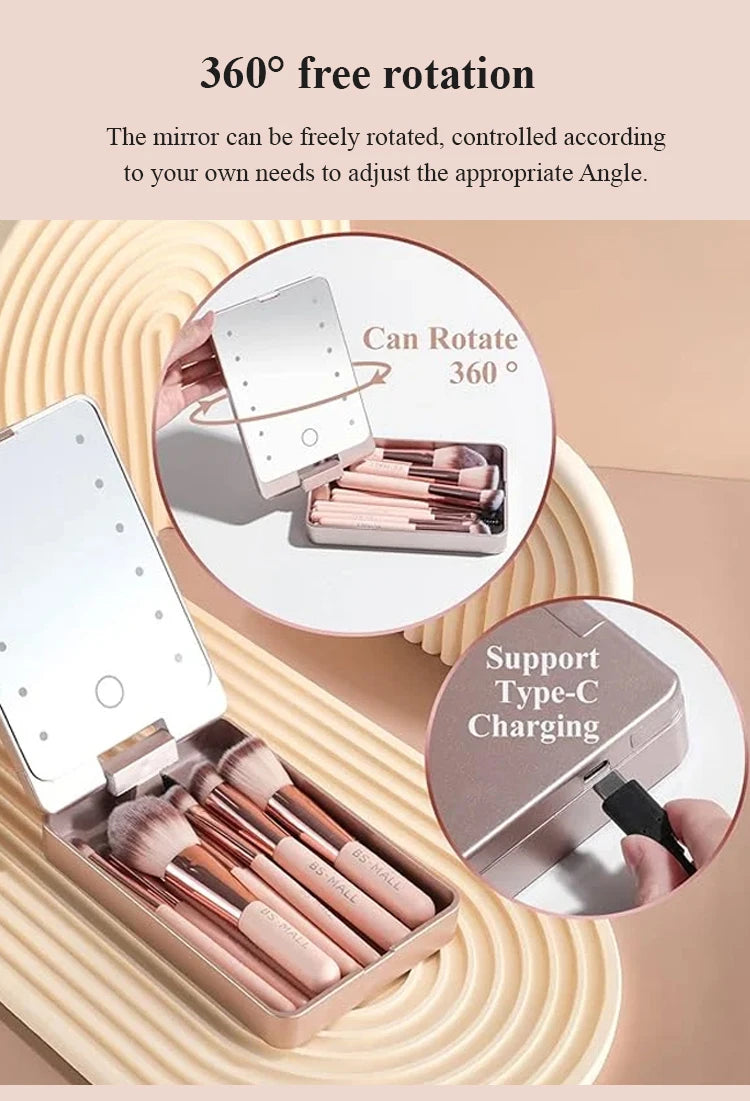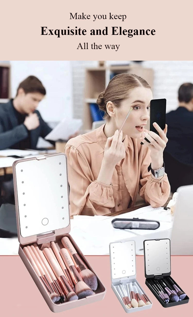NEW Arrivals Make-Up Mirror Set with Lid Dustproof Organizer Lighted Makeup Brush Set Mirror for Bloggers Outdoor Travel Night Club Women Cosmetic Sets