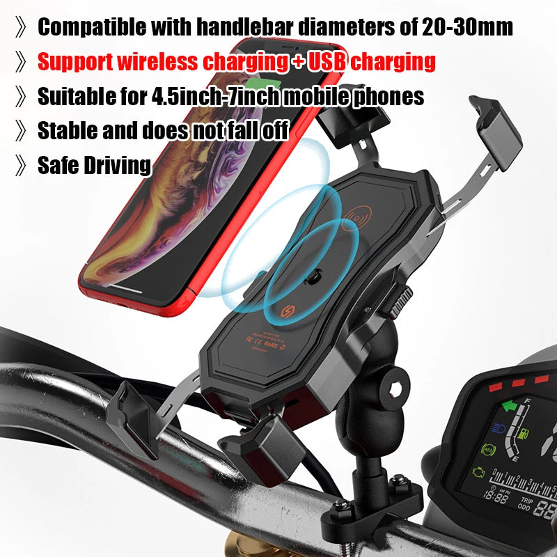 Feature: Black,Support wireless charging + USB charging,Qi 15W + QC3.0 fast charging,Motorcycle Holder,Phone Holder With USB Power Charger,Motorcycle Mobile Phone Holder Waterproof,Motorcycle Smartphone USB Charger,FOR 4.5-7 Inch Mobile Phone,Handlebar / Mirror,Independent Waterproof Button,Mobile Phone Holder Super Quick Charge