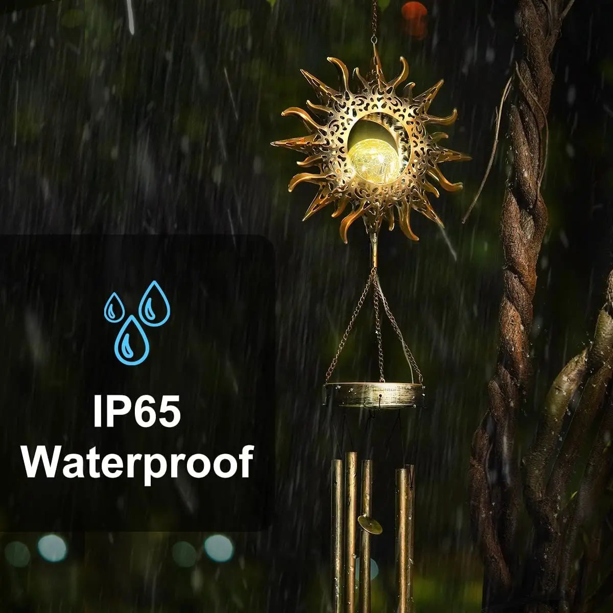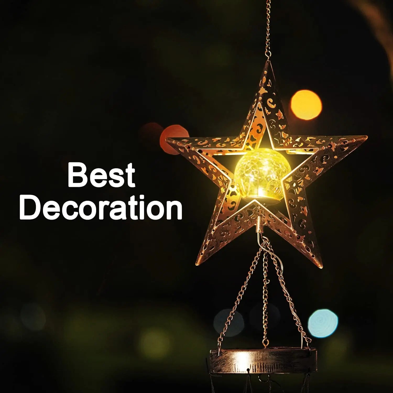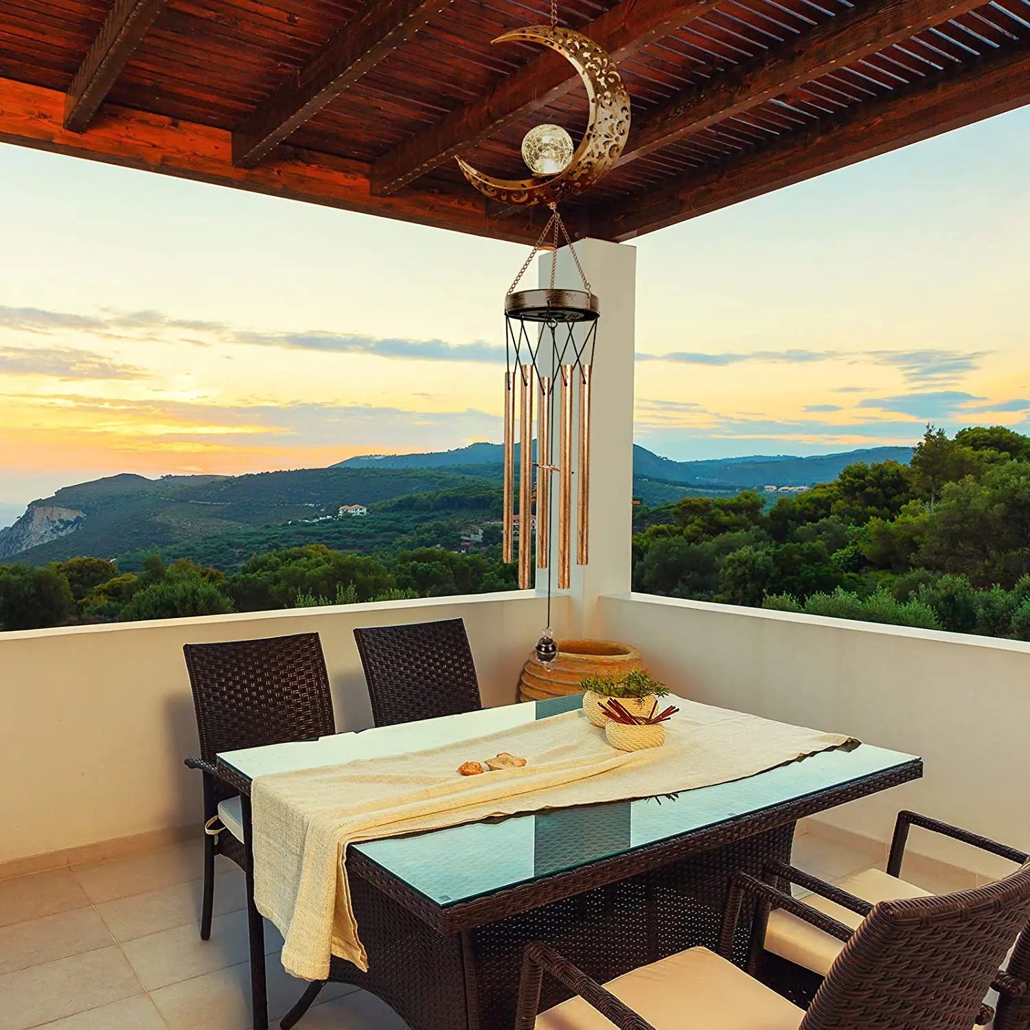 NEW Arrivals Moon/Star/Sun Wind Chimes Outdoor Glowing Moon Sun Stars Solar Glowing Wind Chime Metal Tubes Wind Bells for Home Decor Waterproof Chimes Gift