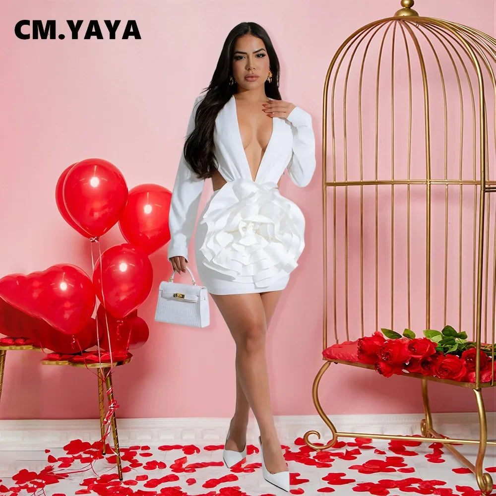 NEW Arrivals S-2XL UK Size Red/White Women Sexy Rose Floral Applique Long Sleeve Bodycon Mini Midi Dress Winter V-Neck Evening Night Club Party Sexy Dresses