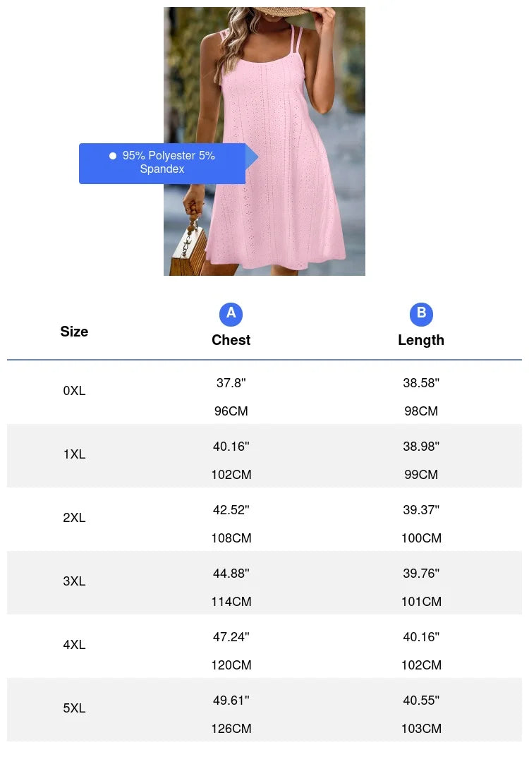 NEW Arrivals UK XL-5XL Plus Size 4 Colors Eyelet Jacquard Solid Cami Dress Casual Crew Neck Sleeveless Dress For Spring & Summer Women's Plus Size Clothing