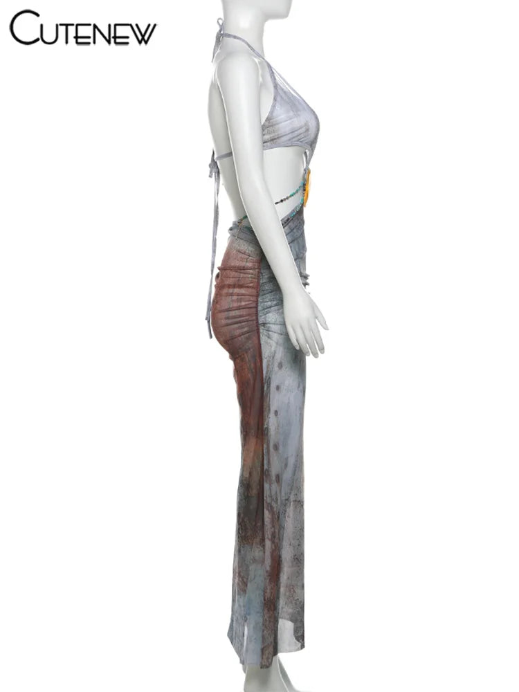 NEW Arrivals Vintage Sexy Long Dress Women Female Halter Bandage V-Neck Backless Split Shirring Hot Summer Midnight Beach Party Night Clubwear Outfits Girls Ladies Luxury Fashion Clothing Supplies