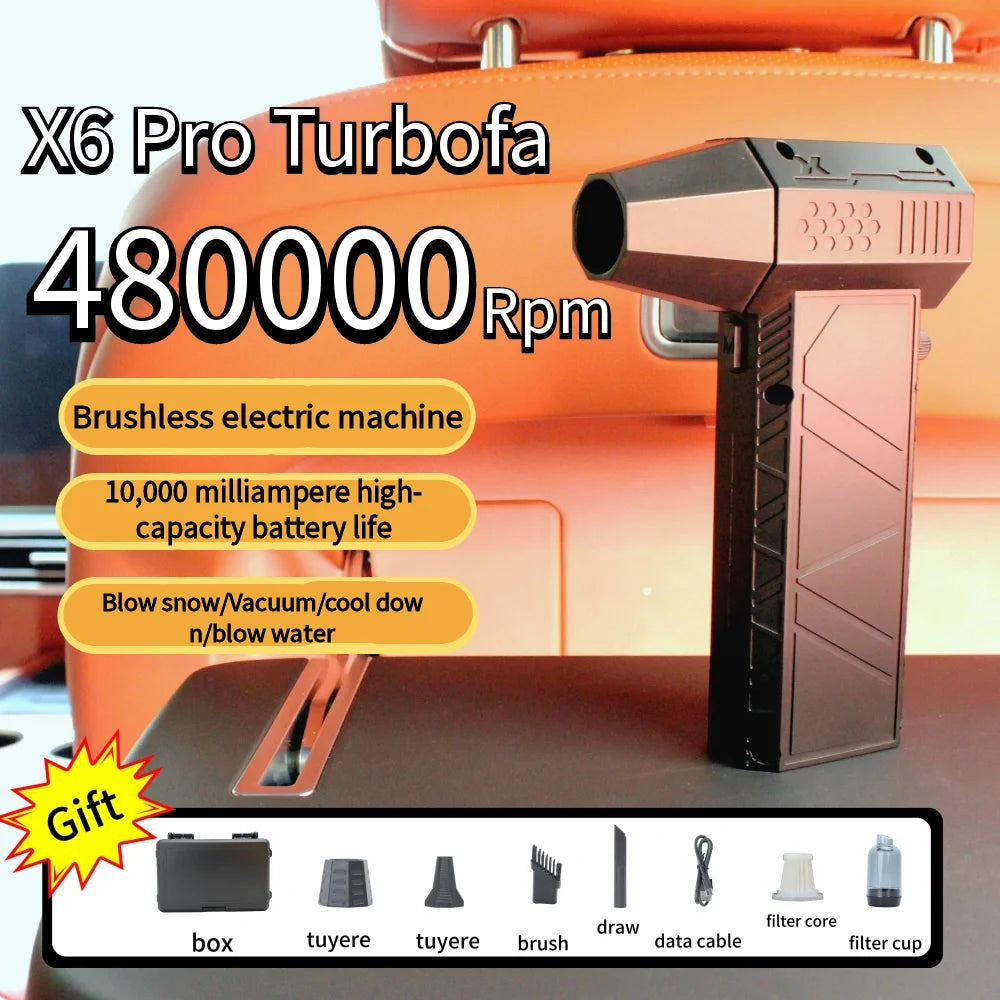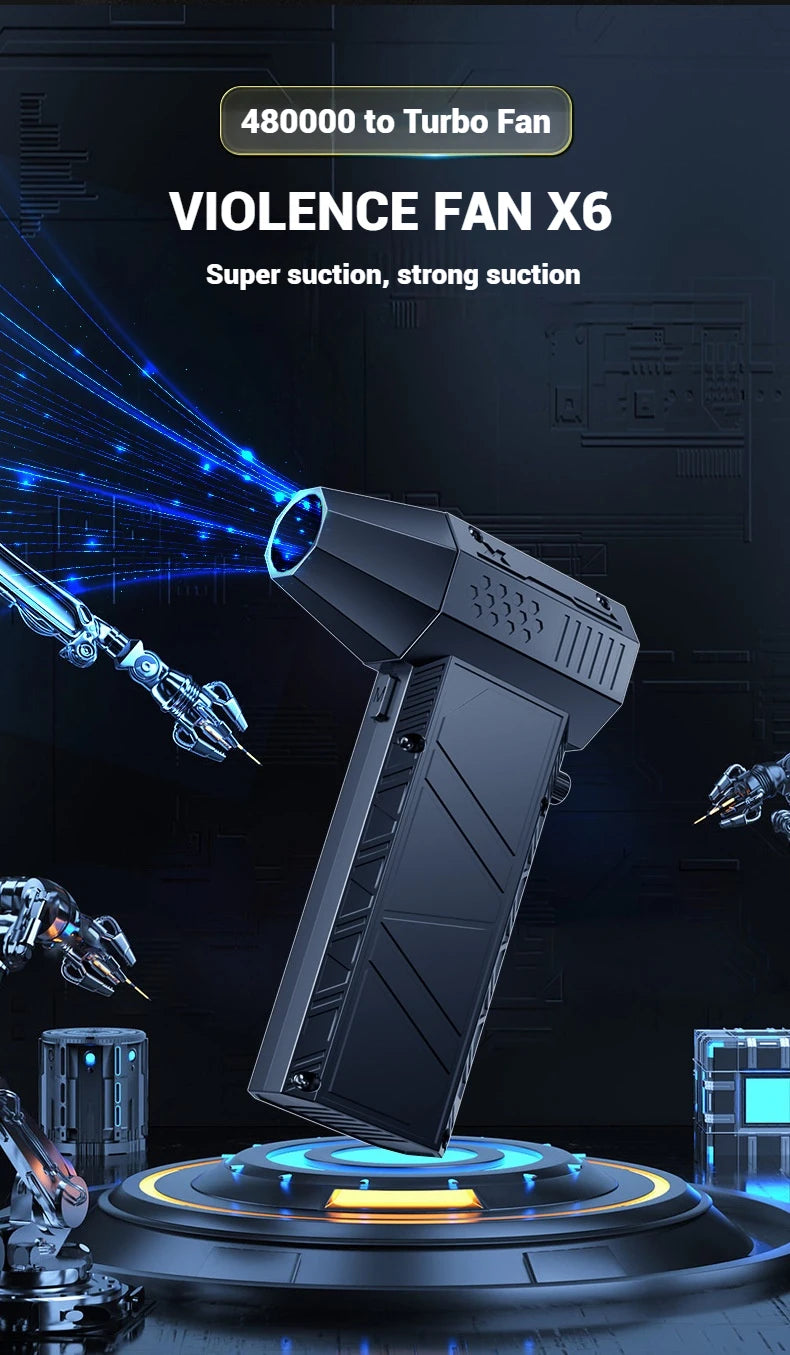 NEW Arrivals Wireless Violent Fan Set 480000RPM Powerful Air Blower Vacuum Dust Cleaner Type-C Charging Strong Winds 62m/s Brushless Turbo Jet Blower BBQ Camping Home PC Car Cleaning Supplies