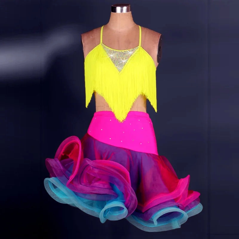 NEW Arrivals Women Dancing Dress Woman Ballroom Tango Fringe Salsa Rumba Adult Tassel Top And Skirt Professional Latin Dance Costume