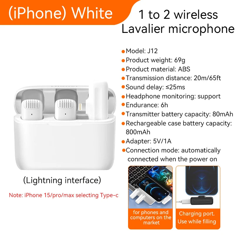 NEW!!!! HOT SALE!!!! J12 Wireless Lavalier Microphone Professional Portable 20M Receive Range Plug Play Mic For Smartphone Android iPhone16 15 14 13 12 Products Live Stream YouTube TikTok Reels Recording Electronics Sound Su